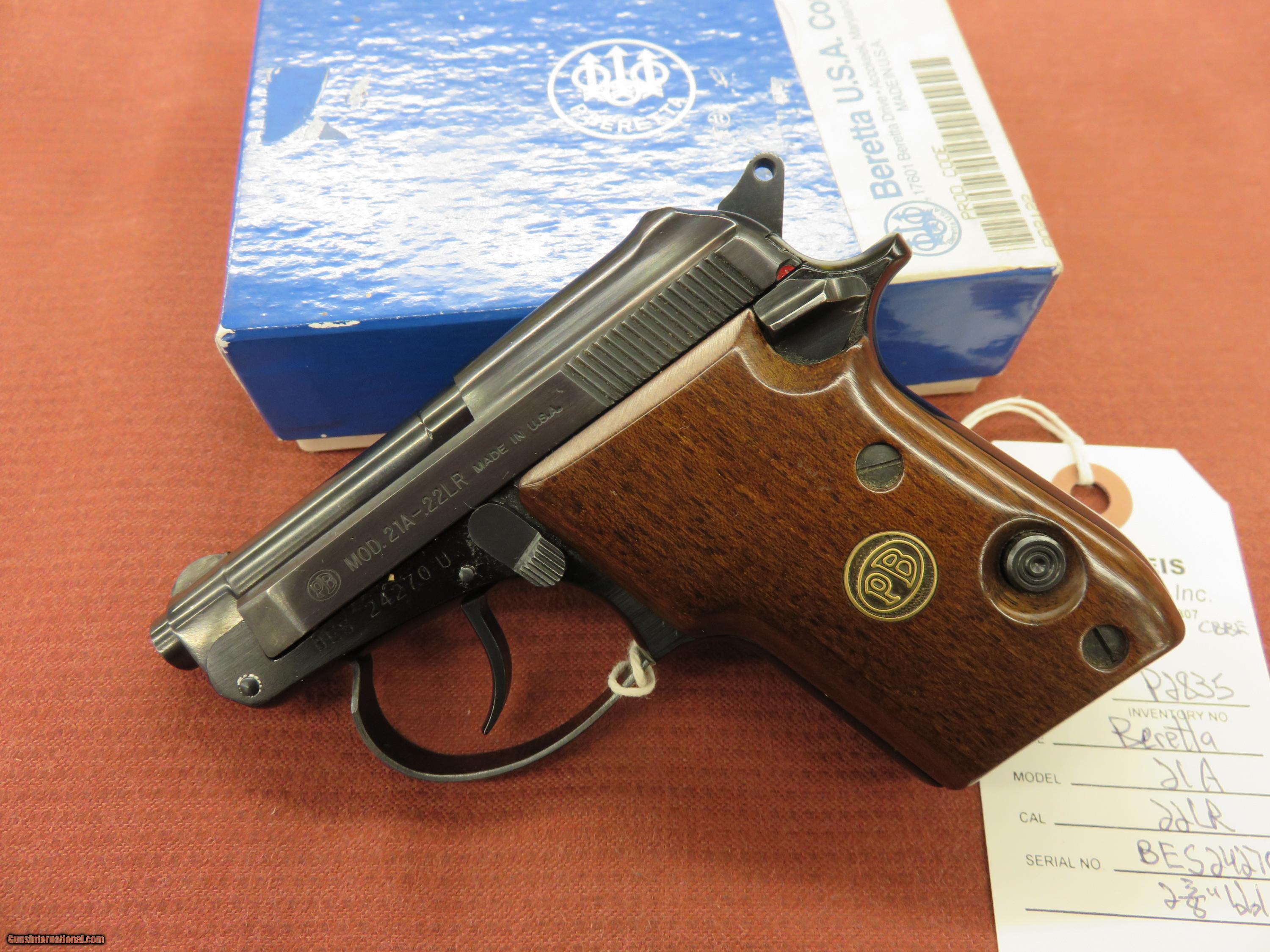 Description: Beretta 21A 22LR, walnut grips,98% overall, with box and extra magazine. SOLD |