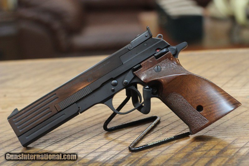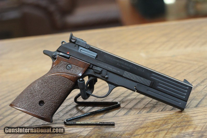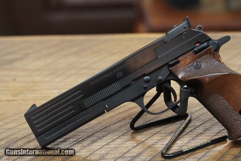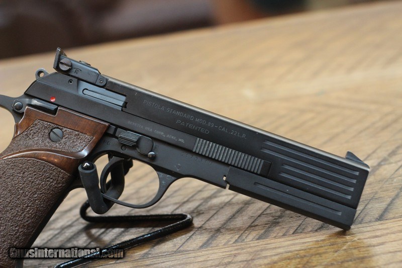 Description: Beretta model 89 .22LR target auto, standard, single action target semi-auto Matte finish 6 " barrel 10 shot magazine weighs 41 oz. wood grips Unfired condition ,in factory box , with all papers 1980's manufacture Top quality target gun $ 979 all personal checks take 3-5 days to clear SOLD |