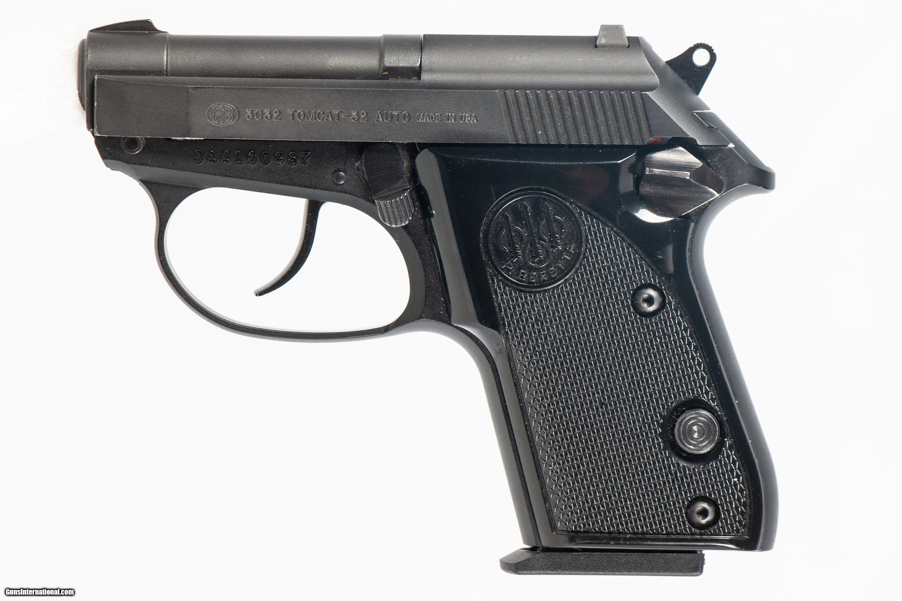 Beretta 3032 Tomcat chambered in 32 acp with a 2 inch barrel bright & shiny bore case and 1 extra magazine. This firearm is in excellent condition and is covered by Dury's Lifetime Warranty.