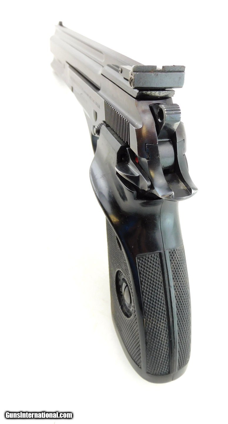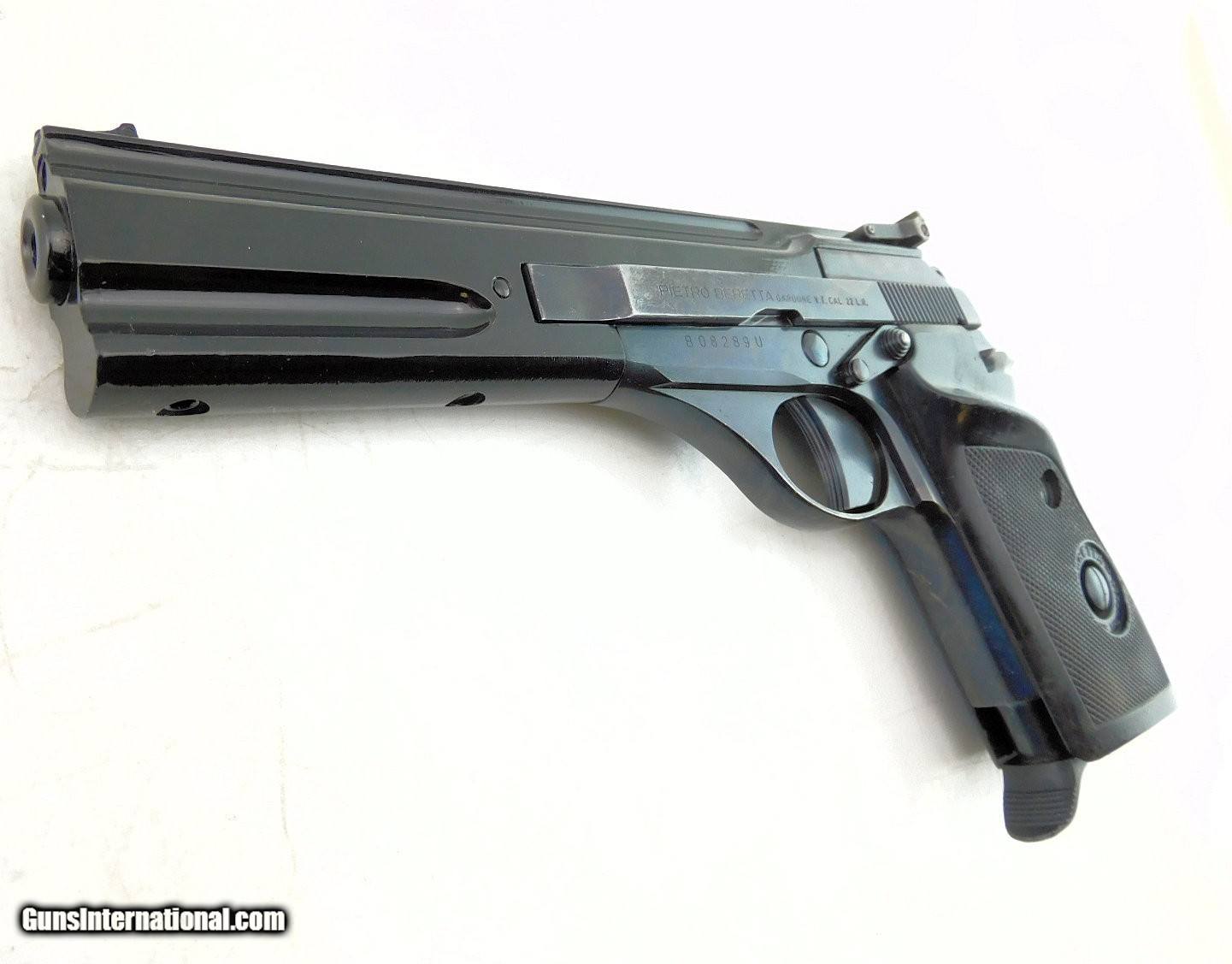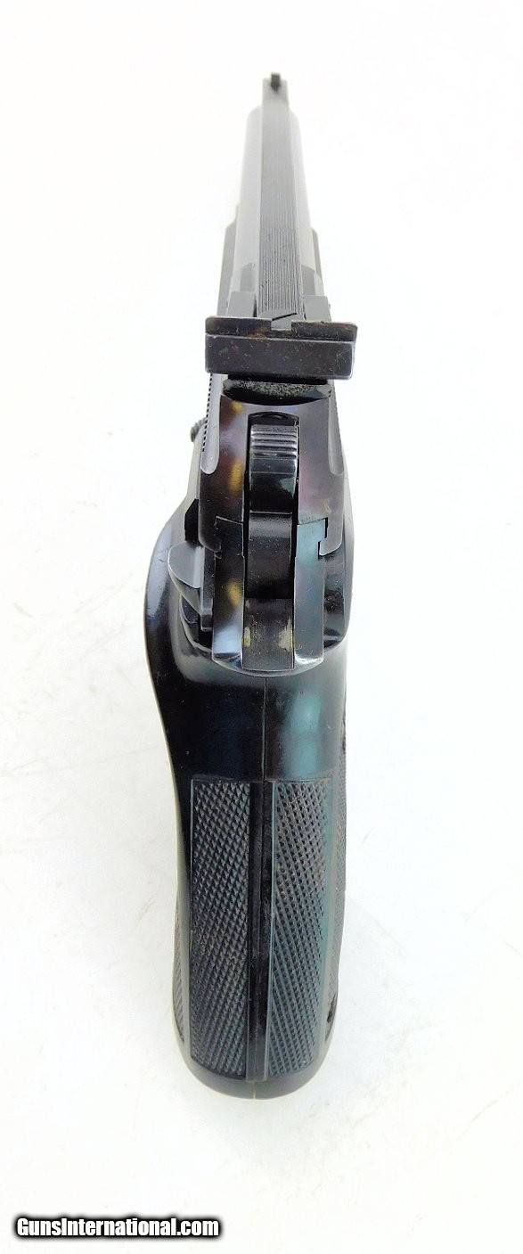 Description: Beretta 76 Target Pistol .22 LR, 5.9" bbl, bright shiny bore, good rifling, adjustable square notch rear sight, replaceable front sight, black finish, one 10 round magazine, and Beretta black checkered target grips. This will be a fun pistol on the range or in the field! Sold AS-IS, No Return. Add 3% for Credit Card Shipping $30.00 in the 48 contiguous United States SOLD |