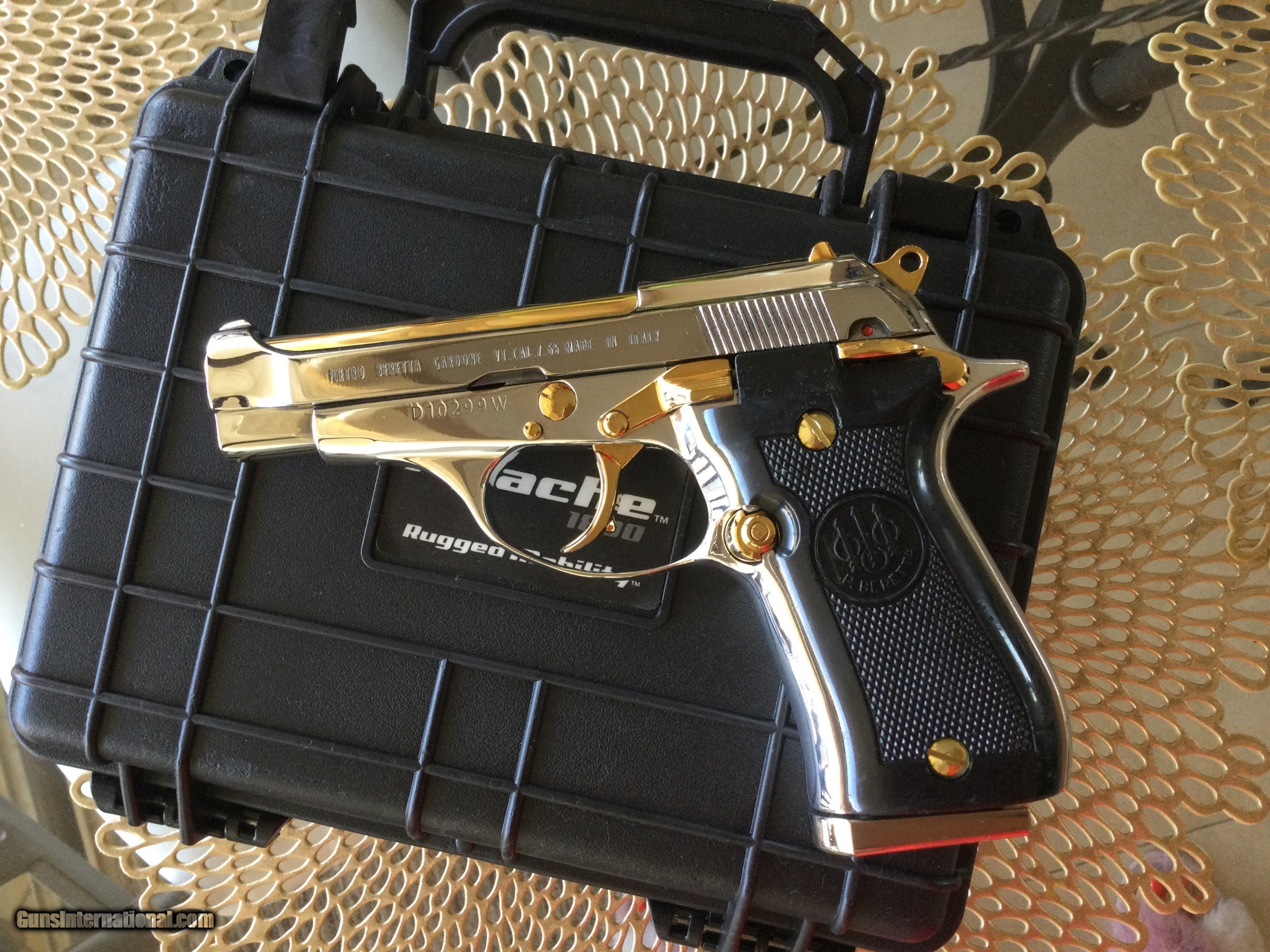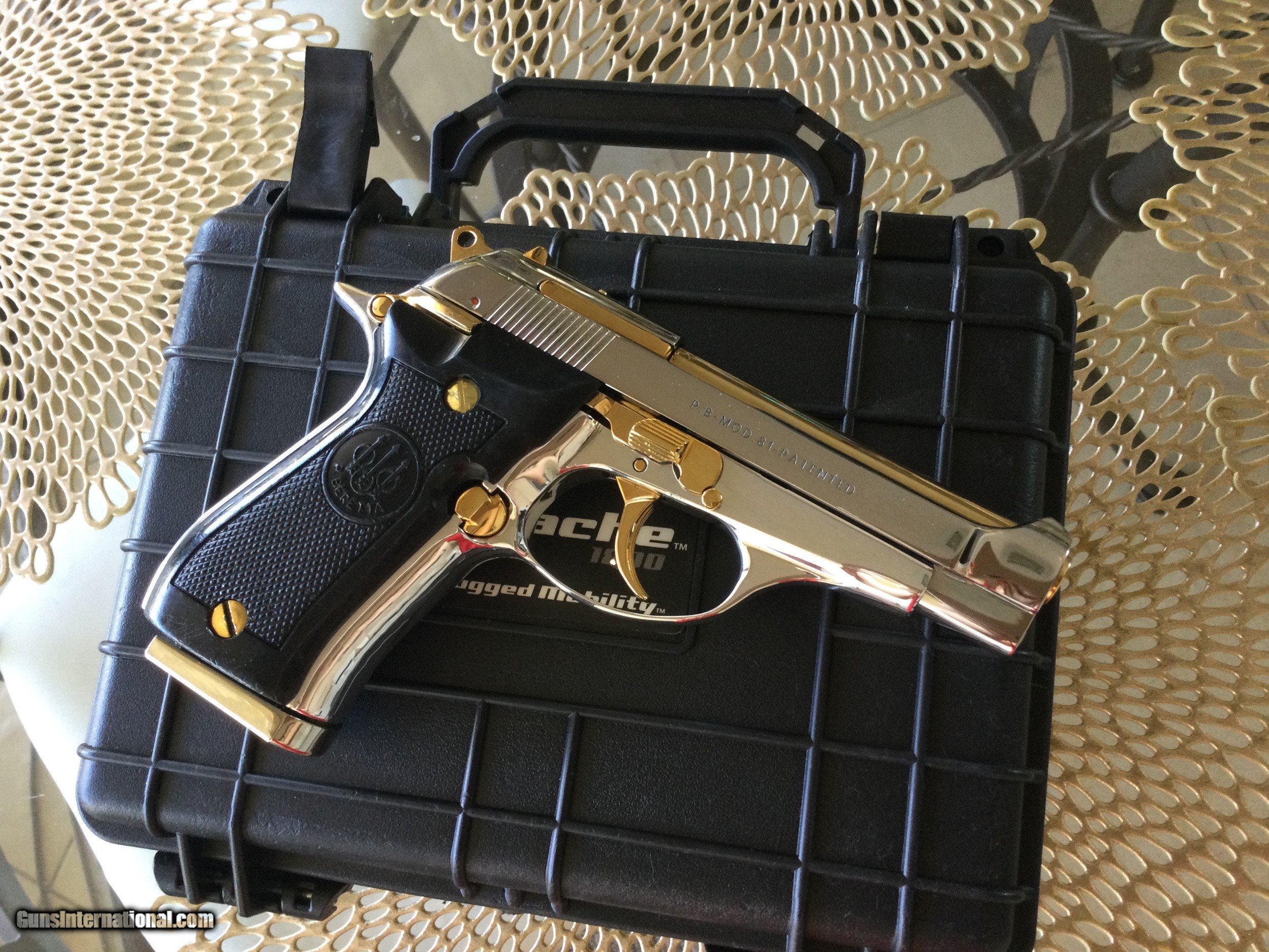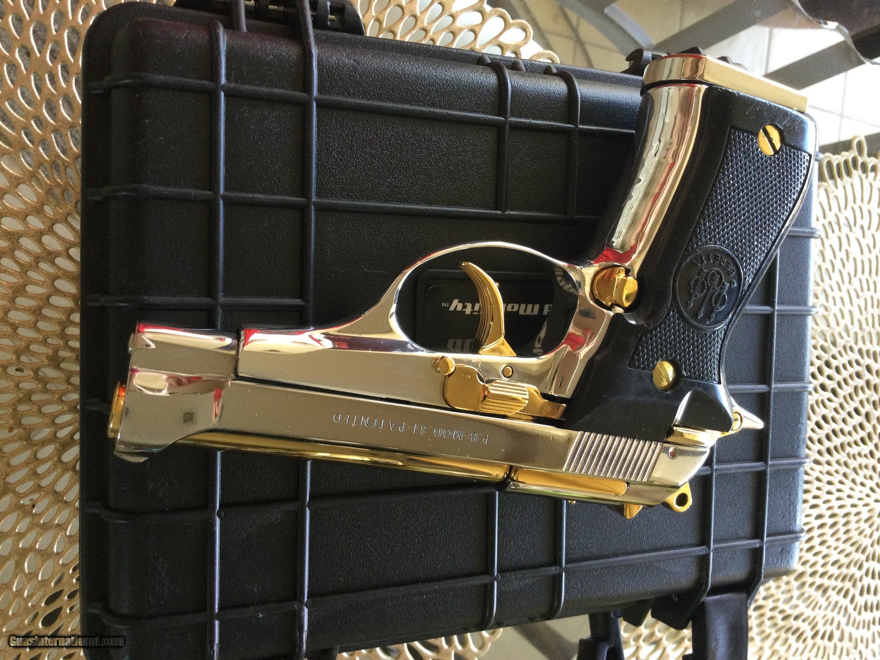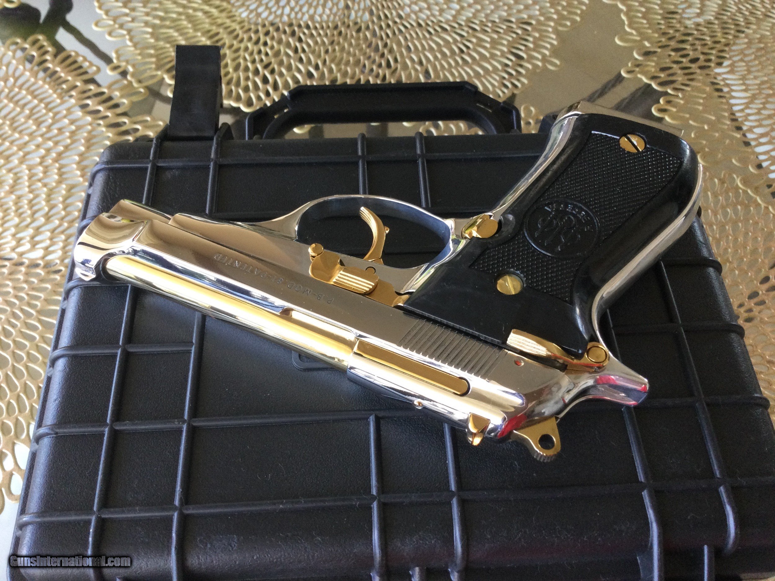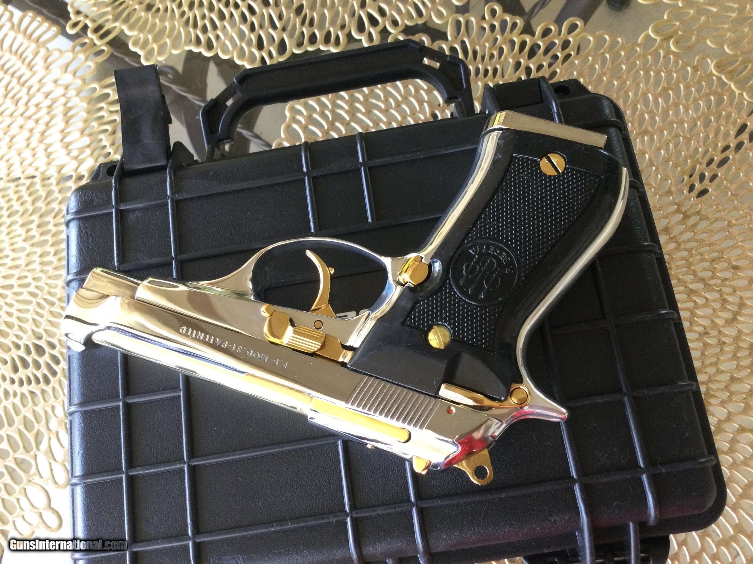 Description: Beretta 81 , 7,65 caliber. 24 carat gold plated parts. Nickel plated high polish. Made in Italy. 13 rounds magazine with a silver bottom with beretta logo. Original grips with beretta logo. Not original box (water proof). Credit card fee 3%. CA ok. SOLD Handgun Caliber: .32 ACP (7.65x17mm Browning SR) Manufacturer: Beretta Model: 81 Serial Number: D10299W |