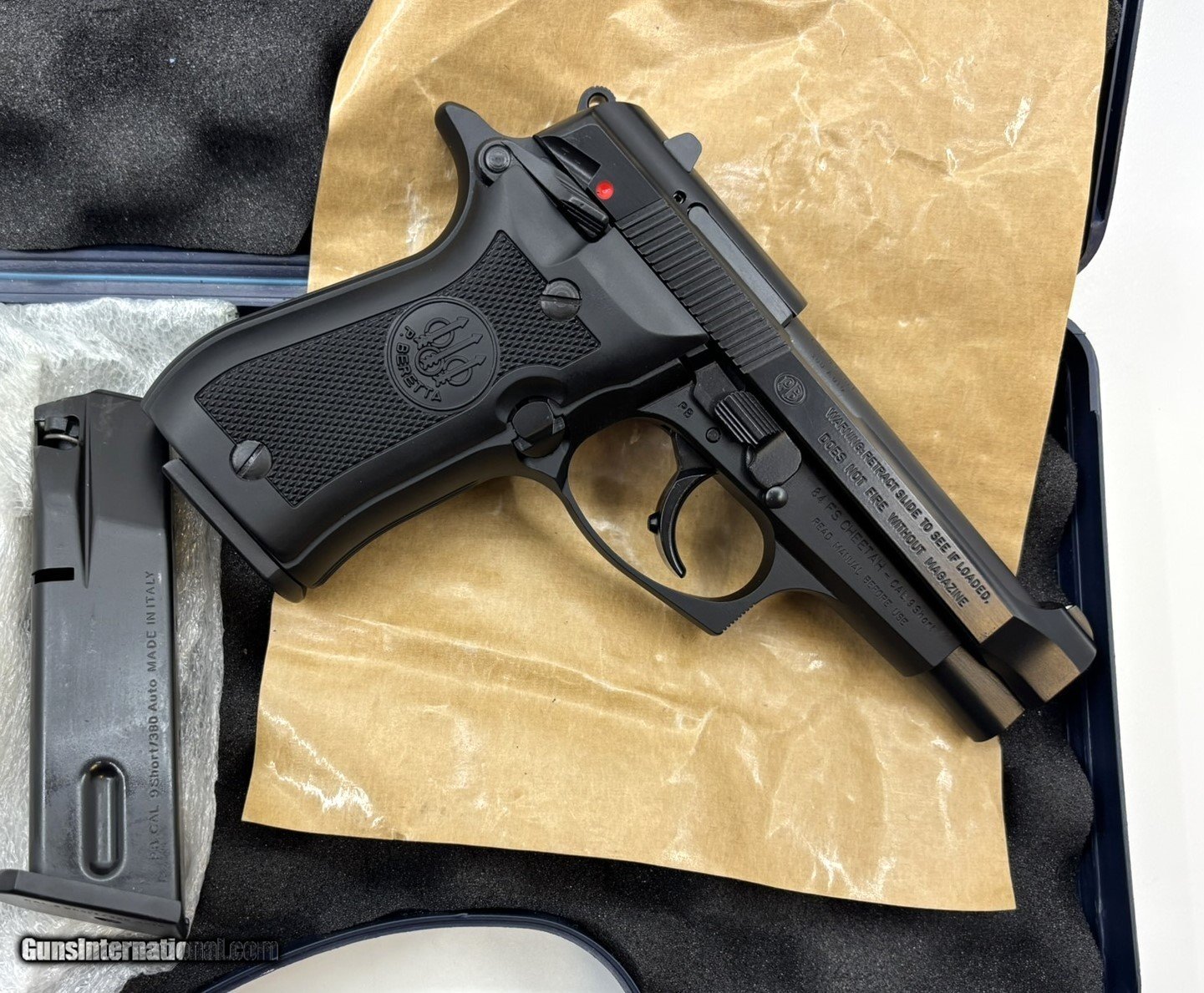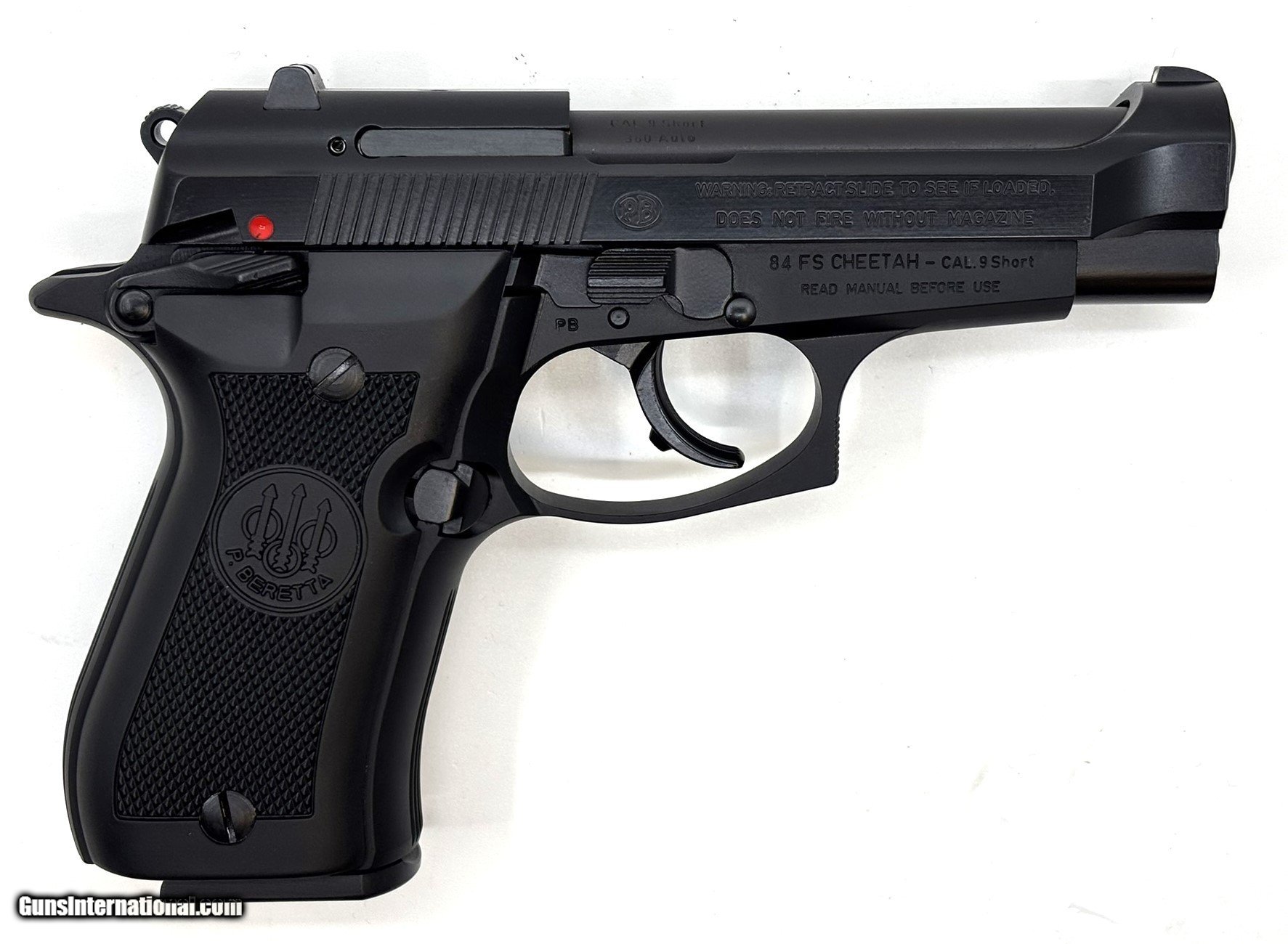 Description: Guns Listing ID: 484791 This preowned Beretta 84FS Cheetah is unfired and in like-new condition. The pistol‚‚s finish has no visible wear. It comes complete with the original blue factory case and two magazines. It does not come with the outer cardboard box. This little Beretta was made in Italy and functions as intended. Like other European .380 ACP pistols, this one‚‚s caliber is marked as a 9 Short. The only noticeable imperfection is a line on the left plastic grip panel that is visible in the picture. This 84FS is an ideal choice for those seeking a classic, no longer available, firearm in immaculate condition SOLD Manufacturer: BERETTA Model: 84FS Condition: Used - Non-Certified Barrels: 4 Gauge Info: .380 ACP Finish: black |