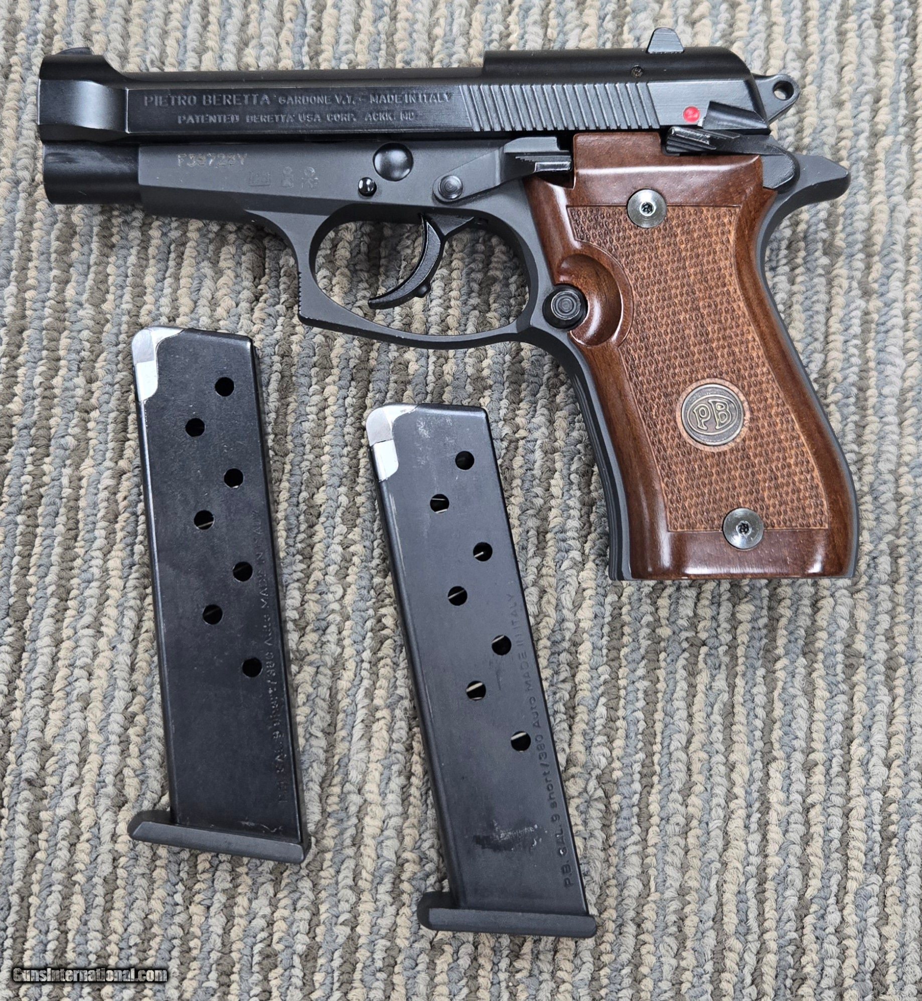 Description: Guns Listing ID: 1332573 Beretta 85FS .380 cal semi auto, 8-shot single stack magazine (2) mags included. This gun is like new with couple very light handling marks. Nice factory checkered hardwood grips. SOLD Manufacturer: BERETTA Model: 85FS Caliber Info: .380 ACP Condition: Used - Non-Certified Barrels: 3.75 BARREL Finish: BLUE |