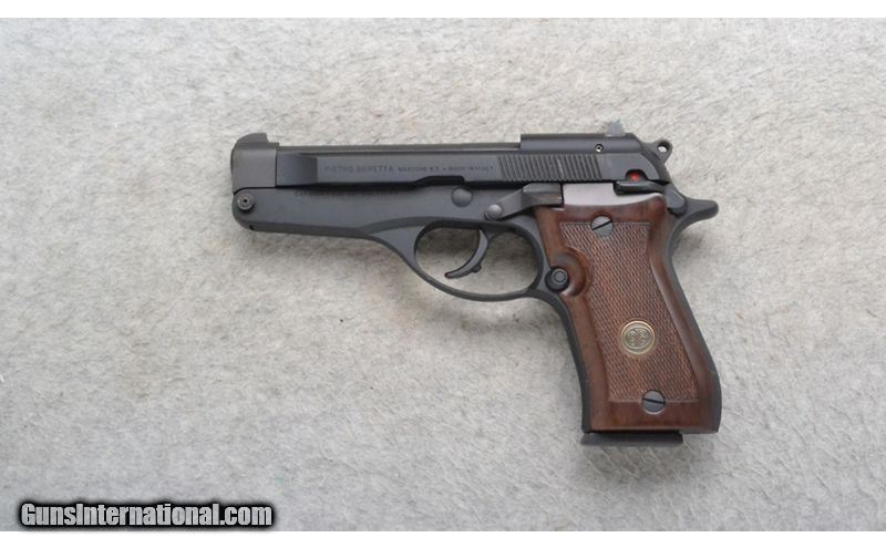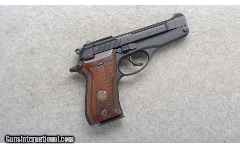 Description: This Beretta Model 86 is a right hand double action semi-auto pistol in .380 ACP Cal. It has a 4.5 inch barrel with a rear serrated slide. A blade front sight and notch rear sight with 3 white sight dots. The grip is a checkered hardwood with brass Beretta medallions. The front and back straps are grooved. It has an ambidextrous safety and a ringed serrated hammer. .380 ACP SOLD Chambers: 7 round magazine. Metal Condition: Very Good. Wood Condition: Excellent. Bore Condition: Excellent. Barrels: 4.5 inch barrel with a rear serrated slide. Triggers: SA/DA Weight: 24 oz. Sights: Blade front. Notch rear. 3 white sight dots. Item Location: Richfield, WI |