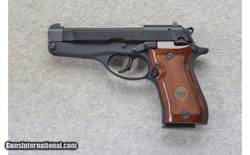 Description: This Beretta Model 86 is a semi-auto pistol in .380 Auto Cal. It has a 4.25 inch barrel with a rear serrated black slide. The sights are a blade front and notch rear with white dots. The grip panels are a diamond checkered walnut with brass medallions and have serrated front and rear straps. SOLD Manufacturer: Made in Italy. Caliber Info: .380 Auto Chambers: Semi-Auto 7 shot magazine. Metal Condition: Excellent with a couple of minor handling marks. Wood Condition: Excellent with a couple of very minor handling marks. Bore Condition: Excellent. Barrels: 4.25 inches with a rear serrated black slide. Triggers: Single Action / Double Action. Grooved. Stock: Diamond checkered walnut with a brass medallions. Weight: 26 oz. Sights: Blade front. Notch rear. 3 white dot. Item Location: Richfield, WI |