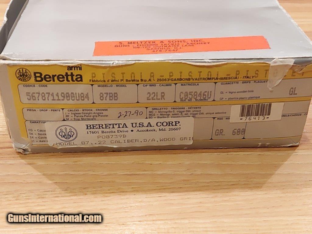 Description: This is an as new Beretta 87BB 22 caliber pistol, It comes complete with box 2 mags papers and outer grey box/ The end label is written in Italian. Payment by post office money order or certified bank check. Shipping about 5 business days after payment is deposited and clears the bank. Not may of these around in this condition complete. SOLD Handgun Caliber: .22 Long Rifle |