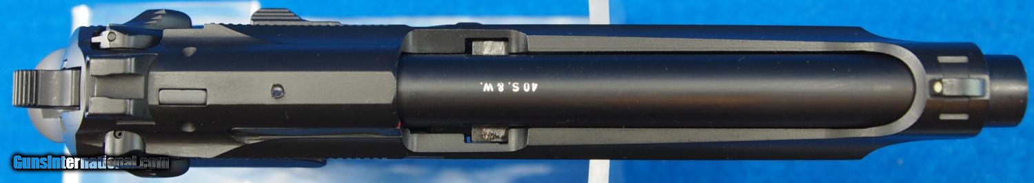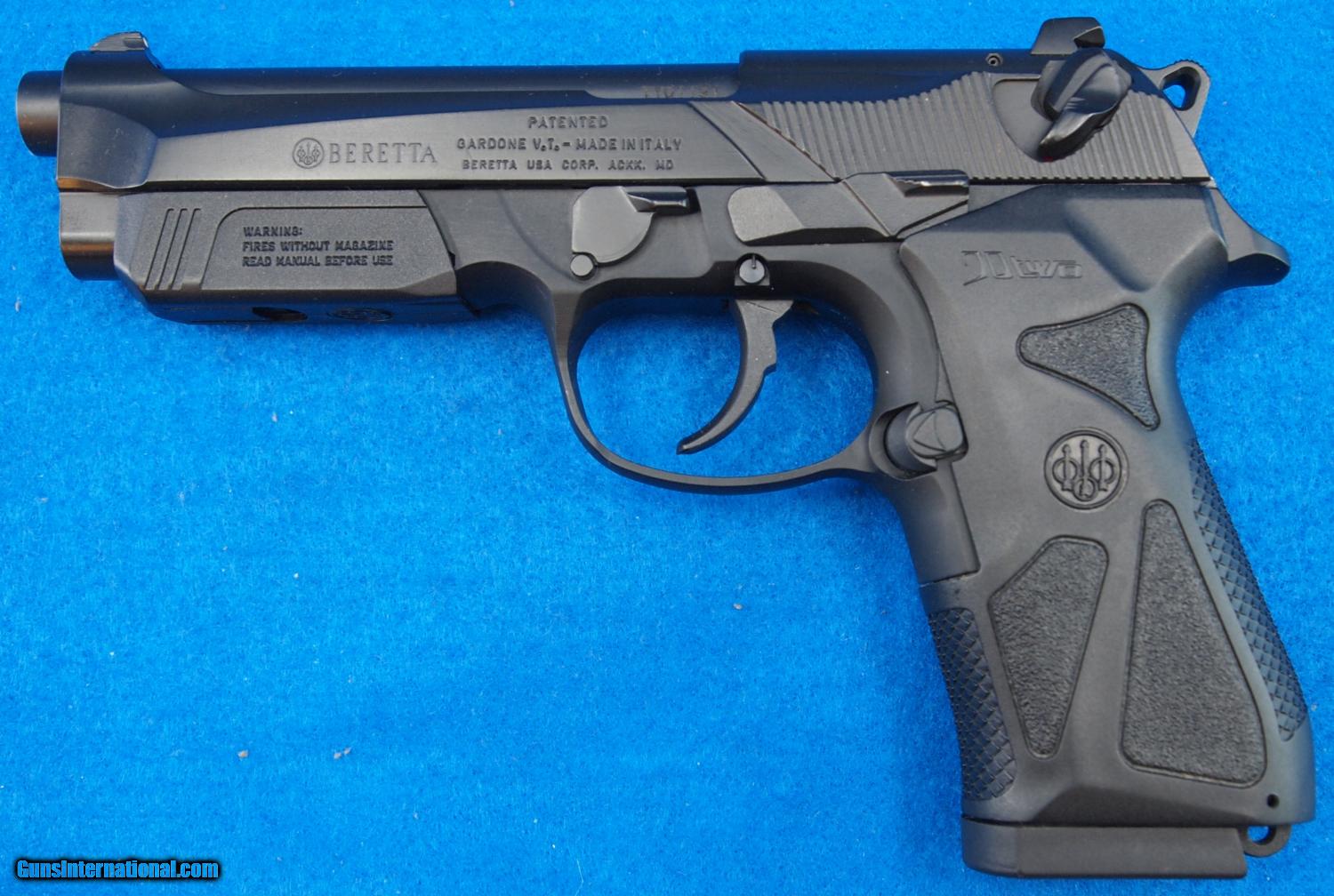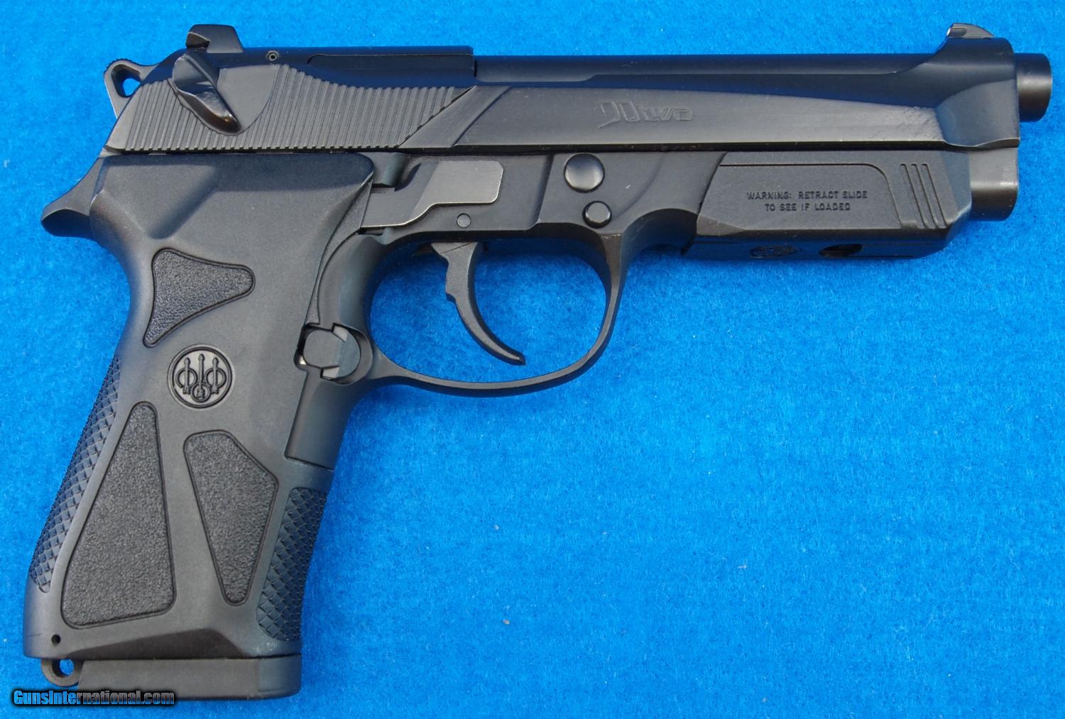 Description: Beretta 90 TWO .40 S&W Semi-auto, alloy frame, 5" barrel, shiny bore, DA/SA, Manual safety, 3-dot white sights, accessory rail with attached dust cover, light scratches to right front slide, S & H $25.00 C/C add 3% SOLD |