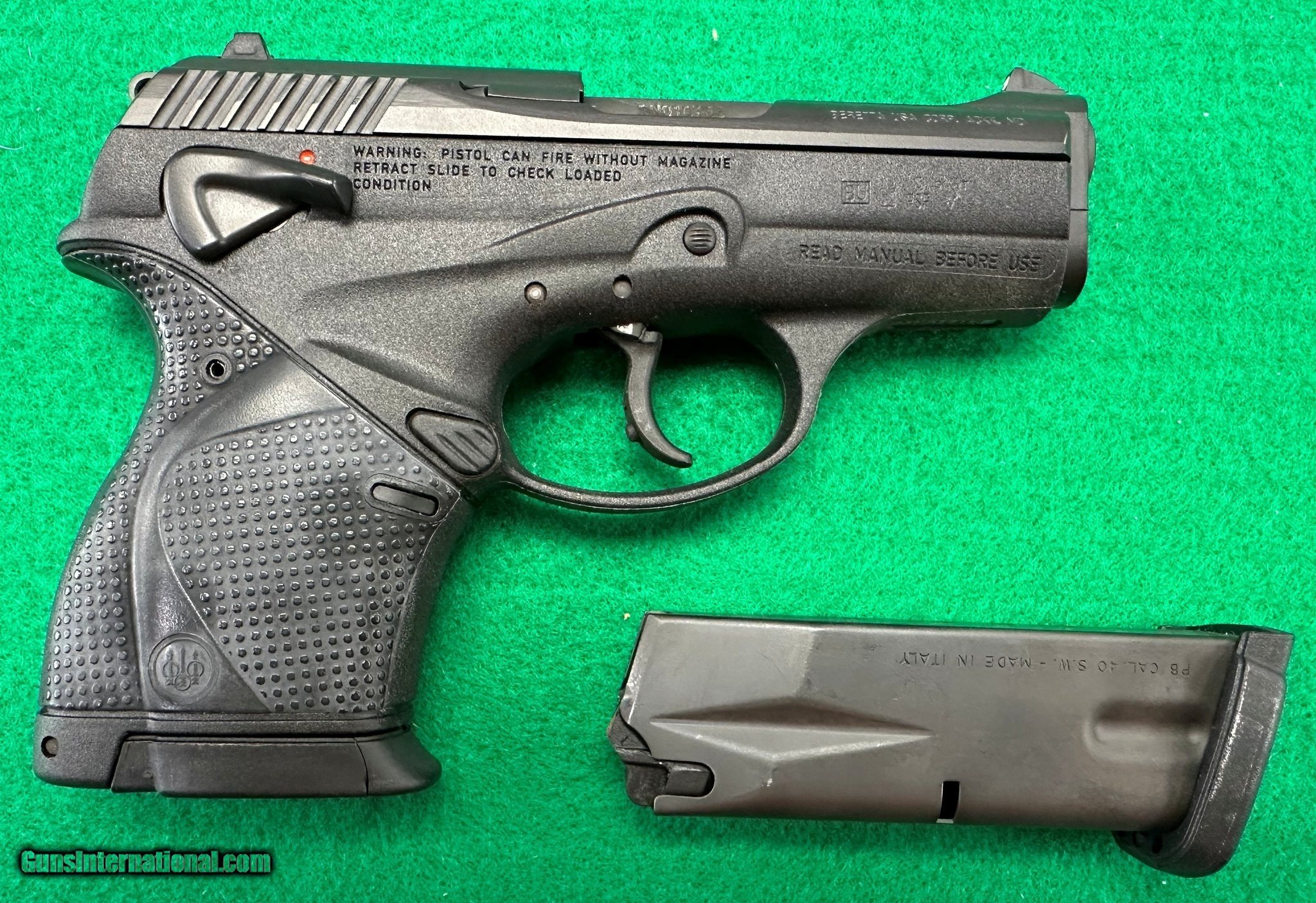 Description: Guns Listing ID: 619603 Includes the original box and two 10 round magazines. Manufacturer: BERETTA Model: 9000 S Caliber Info: .40 S&W Condition: Used - Non-Certified Barrels: 3.5" BARREL Action: SEMI AUTOMATIC Finish: black Price: $319.99 Contact Seller |