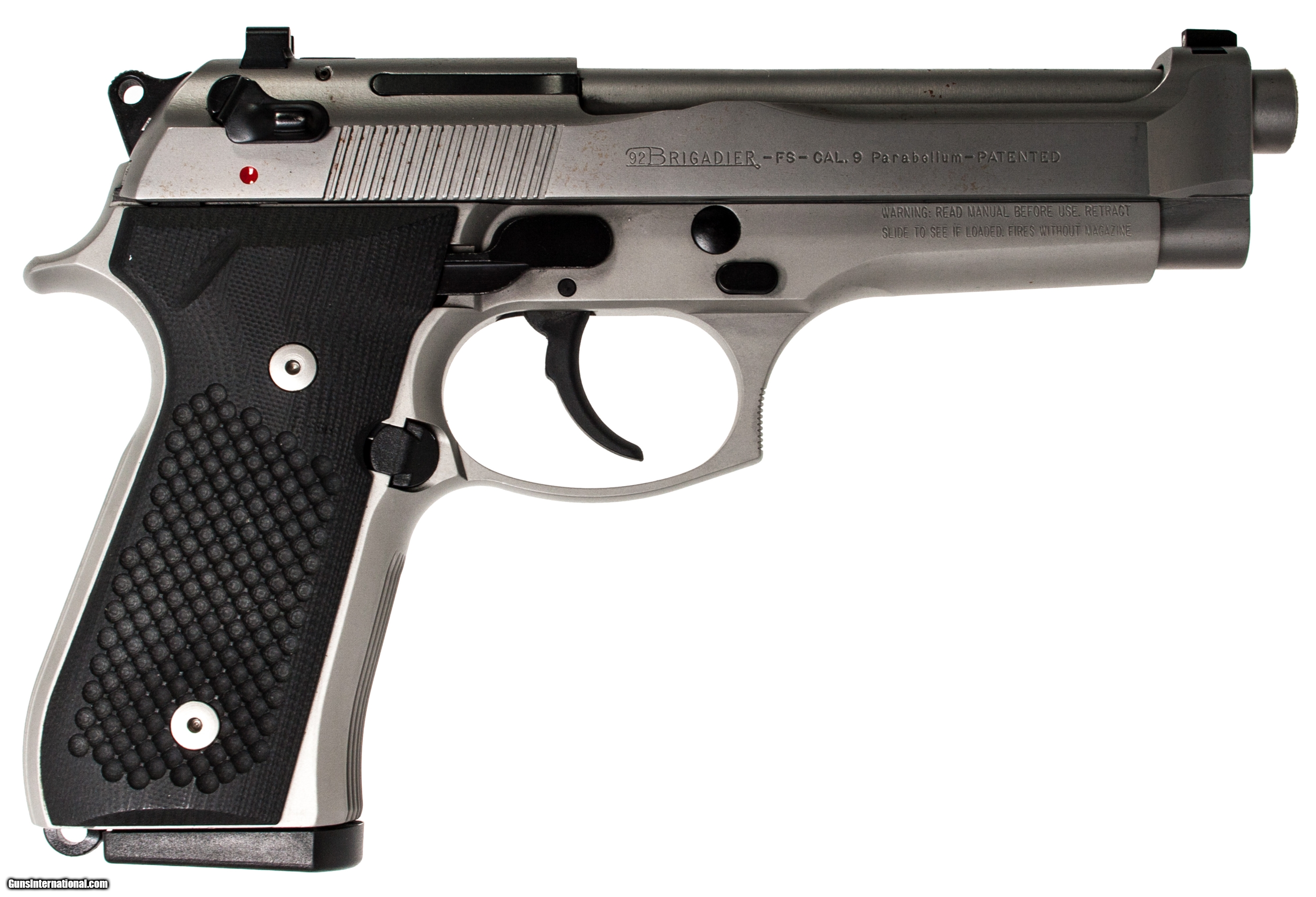 Beretta 92 Brigadier chambered in 9 mm with a 5 inch barrel. This gun is in good condition and is covered by Dury's Lifetime Warranty.