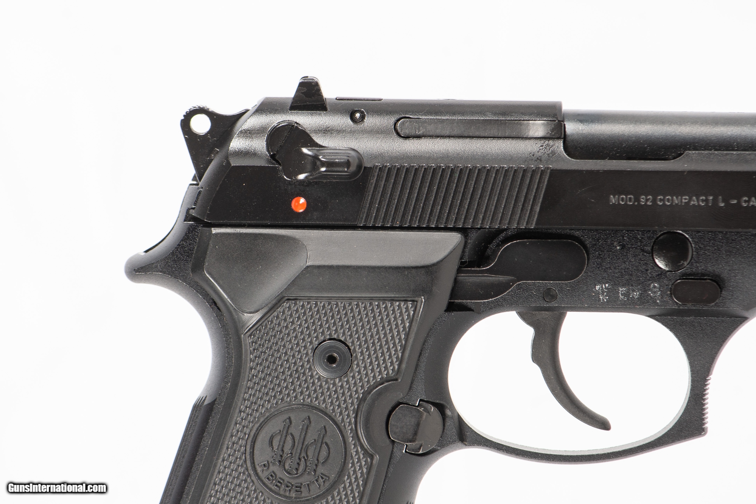 Description: Beretta 92 Compact chambered in 9mm with a 4 1/4 inch barrel bright & shiny bore the original case and 3 extra magazines. This gun is in excellent condition and is covered by Dury's Lifetime Warranty.