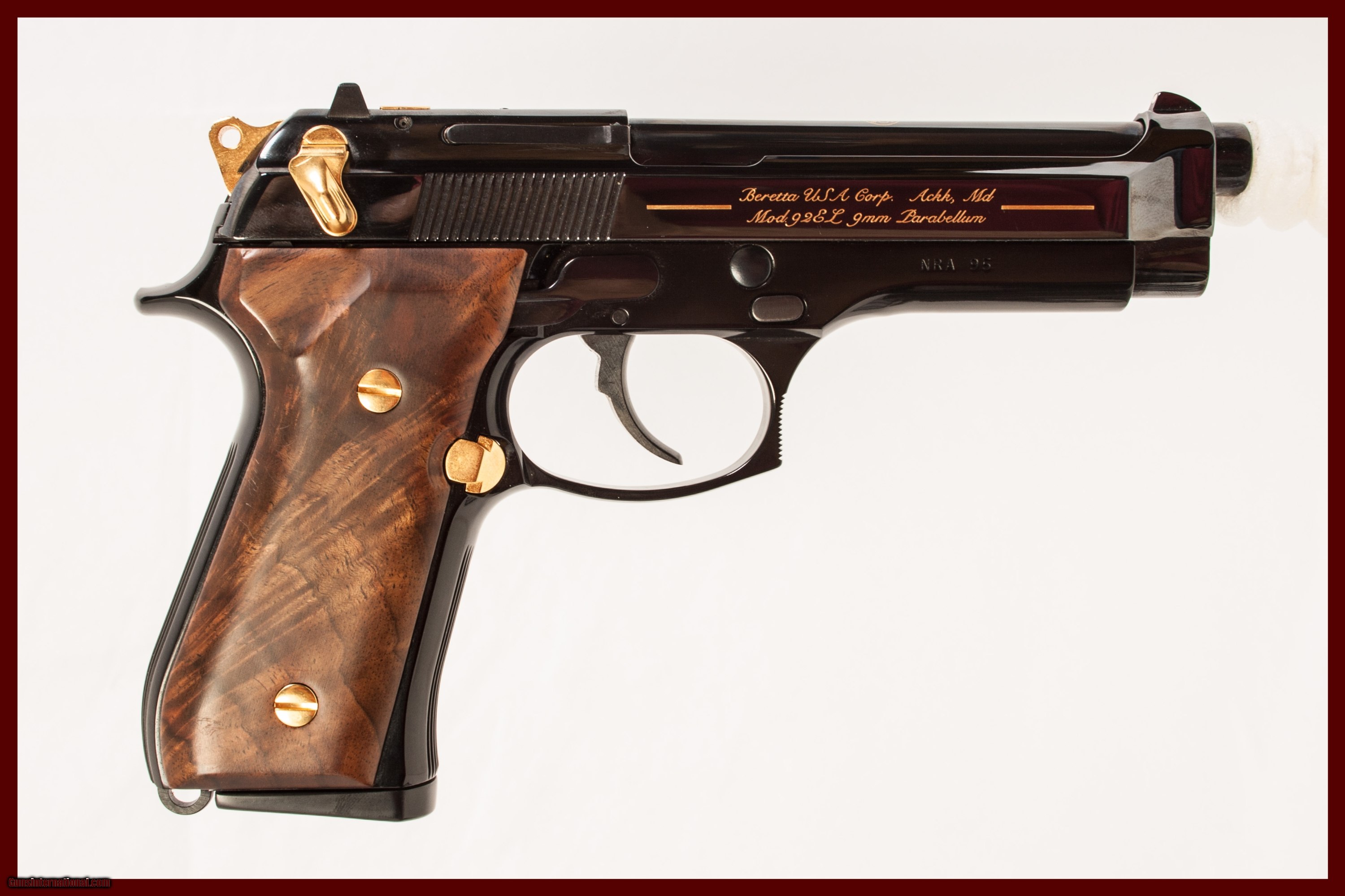 BERETTA 92 EL NRA CHAMBERED IN 9MM WITH A 5 INCH BARREL BRIGHT BORE GOOD GROOVES AND A CASE . THIS GUN IS IN EXCELLENT CONDITION AND IS COVERED BY DURY'S LIFETIME WARRANTY.