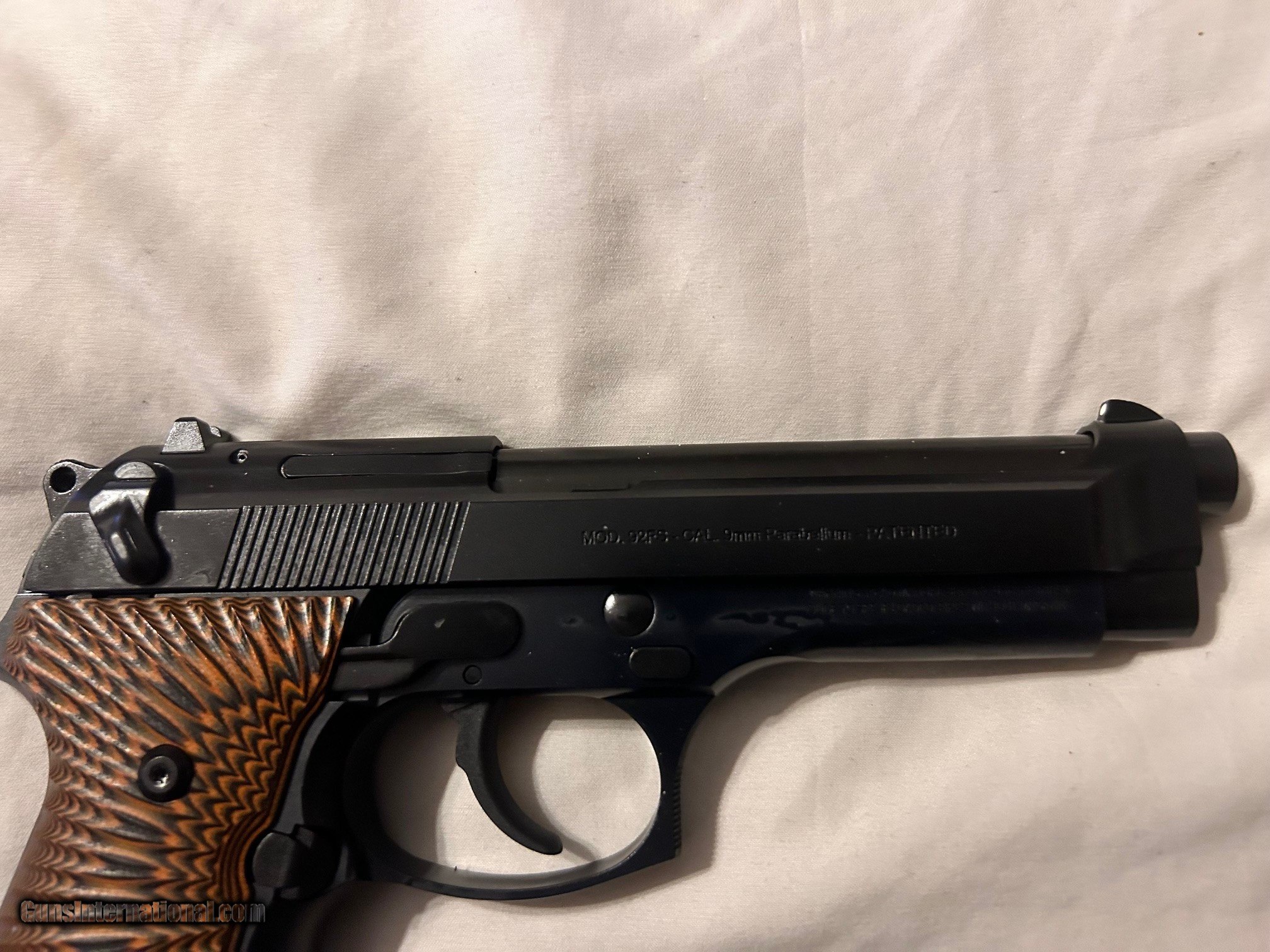 Description: NIB Beretta Model 92FS 9mm 15 Rounds Description: This is a new Beretta Model 92FS, chambered in 9mm. It comes factory hard case with three magazines. Fitted with new Guuun Custom G10 Grips and original factory grips. Beretta 92FS: The World’s Most Trusted Military and Police Pistol The Beretta 92FS has been setting the standards for best military, police, and tactical pistols for over a quarter century. The reason is that it was designed--and has kept evolving--to be and remain the most accurate, durable, and reliable semiauto handgun on the market. Easy to use, absolutely safe, and delivering impressive firepower, it remains the sidearm of the US military and of allied forces the world over, as well as of countless police and law-enforcement agencies. Being the first 9mm handgun adopted widely by the United States military and following in the famed footsteps of the M1911 isn’t an easy task. It certainly gained the hate of lots of people who wanted to validate their love of the M1911. Superior Reliability The 92FS is a double/single-action semiauto pistol that employs an open-slide, short-recoil delayed locking-block system, which yields a faster cycle time and delivers exceptional accuracy and reliability. In particular, the open-slide design practically eliminates “stove-piping” and helps flawless cycling and feeding even after thousands and thousands of rounds. Match-Grade Accuracy out of the Box Regardless of the wonderful reputation it may have, the true test of a tactical pistol’s worth is at the shooting range. The 92FS consistently bests the US military requirement of a 10-shot group of 3” or less at 50 meters (just short of 55 yards). While this type of match-grade accuracy is impressive, it is no magic. At Beretta, we know that absolutely precise tolerances keep performance consistent shot after shot—which not only gives the 92FS its extraordinary accuracy, but it makes all factory parts interchangeable within the same model. Couple this with the ability to reliably feed every variety of commercial ammunition, and it is easy to understand why the 92FS remains the best pistol in its class. Packed with Useful Tactical Features This pistol offers a variety of tactical features that make it equally safe, easy to use, and dependable in the holster of military personnel as well as for home or personal defense. Its reversible magazine release lets you use either hand for tactical magazine changes, while its ambidextrous safety decocker makes it flexible for right- or left-handed persons or for shooters trying out different gripping or shooting styles. Its Bruniton finish is highly resistant to sweat and corrosion, and after the shooting, a tool-free disassembly latch makes it a snap to take the pistol apart for cleaning. These and countless other useful features make the 92FS the choice of military and police professionals all over the world, as well as individuals wanting the absolute best for sport or self-protection. Model 92FS