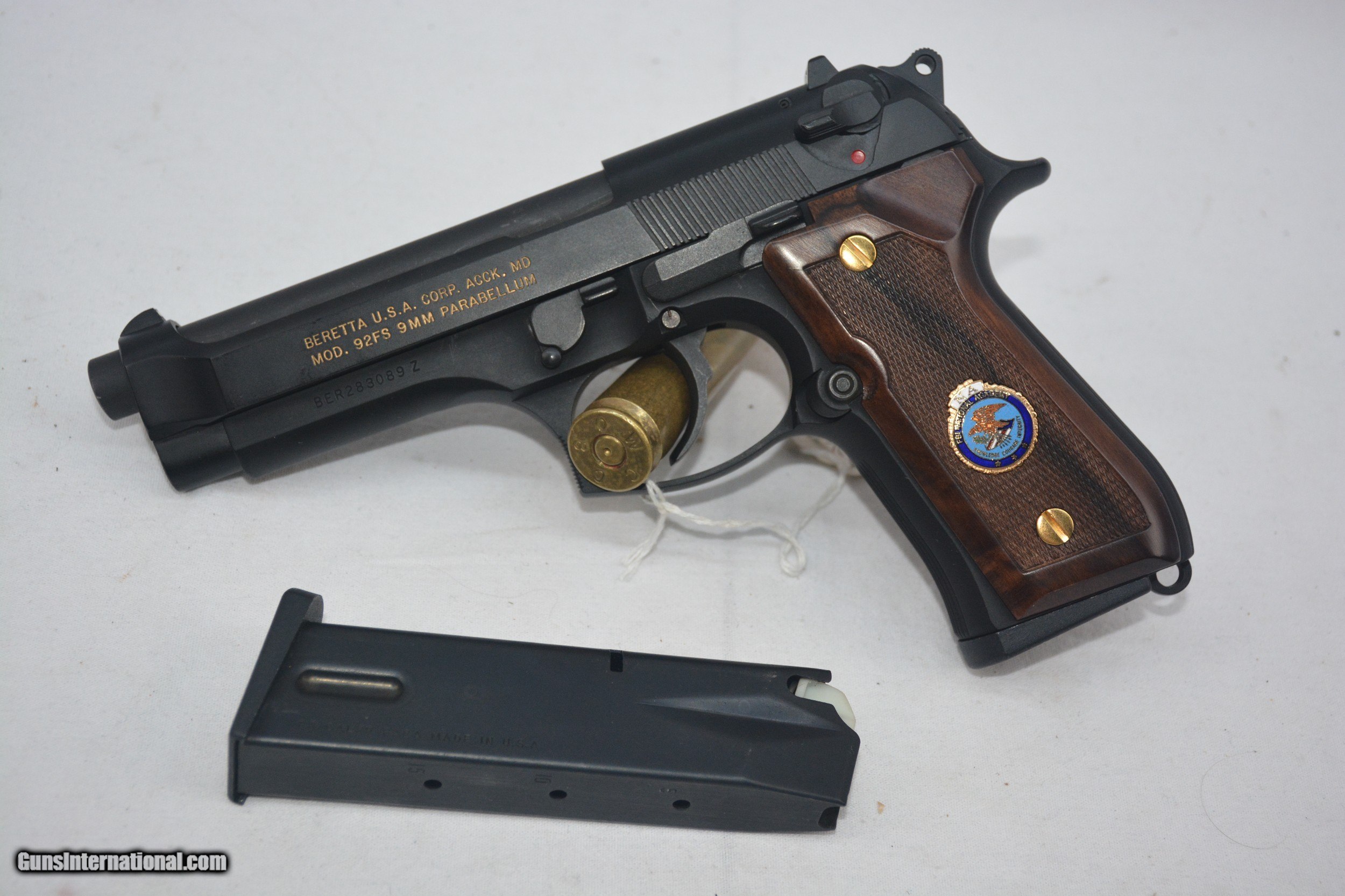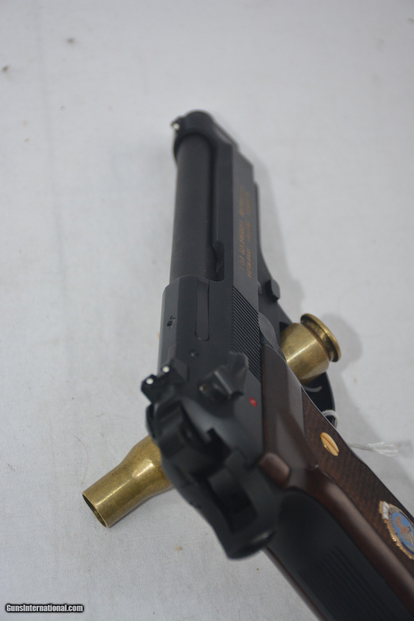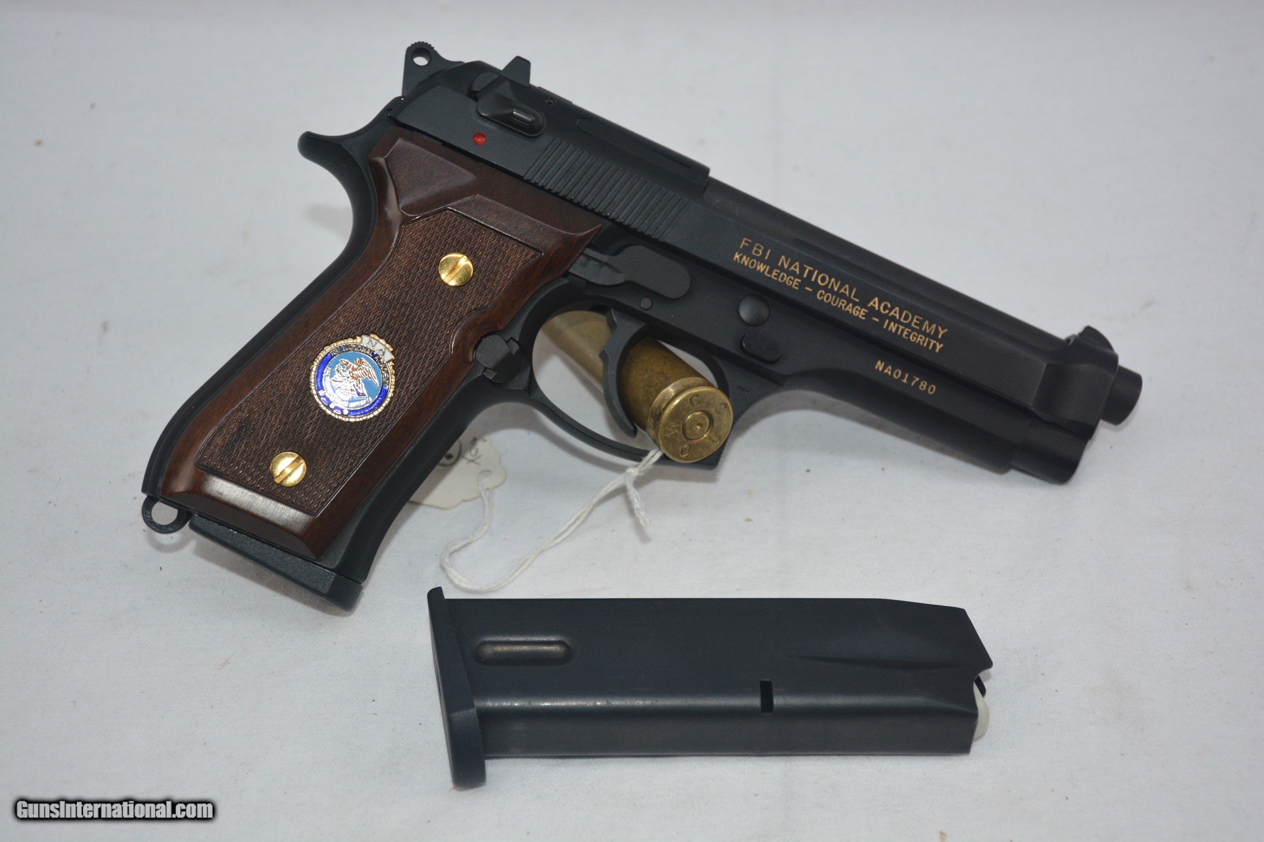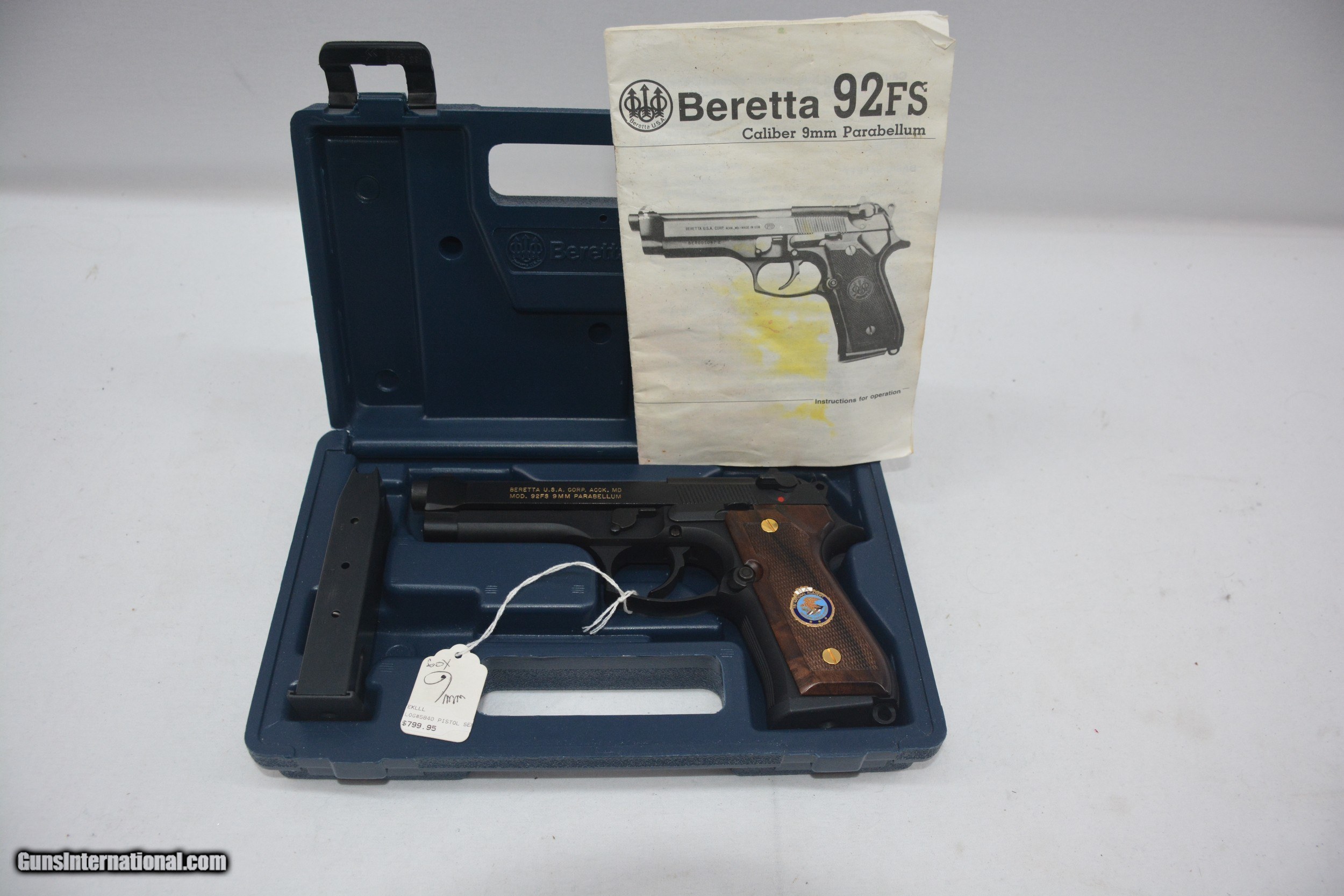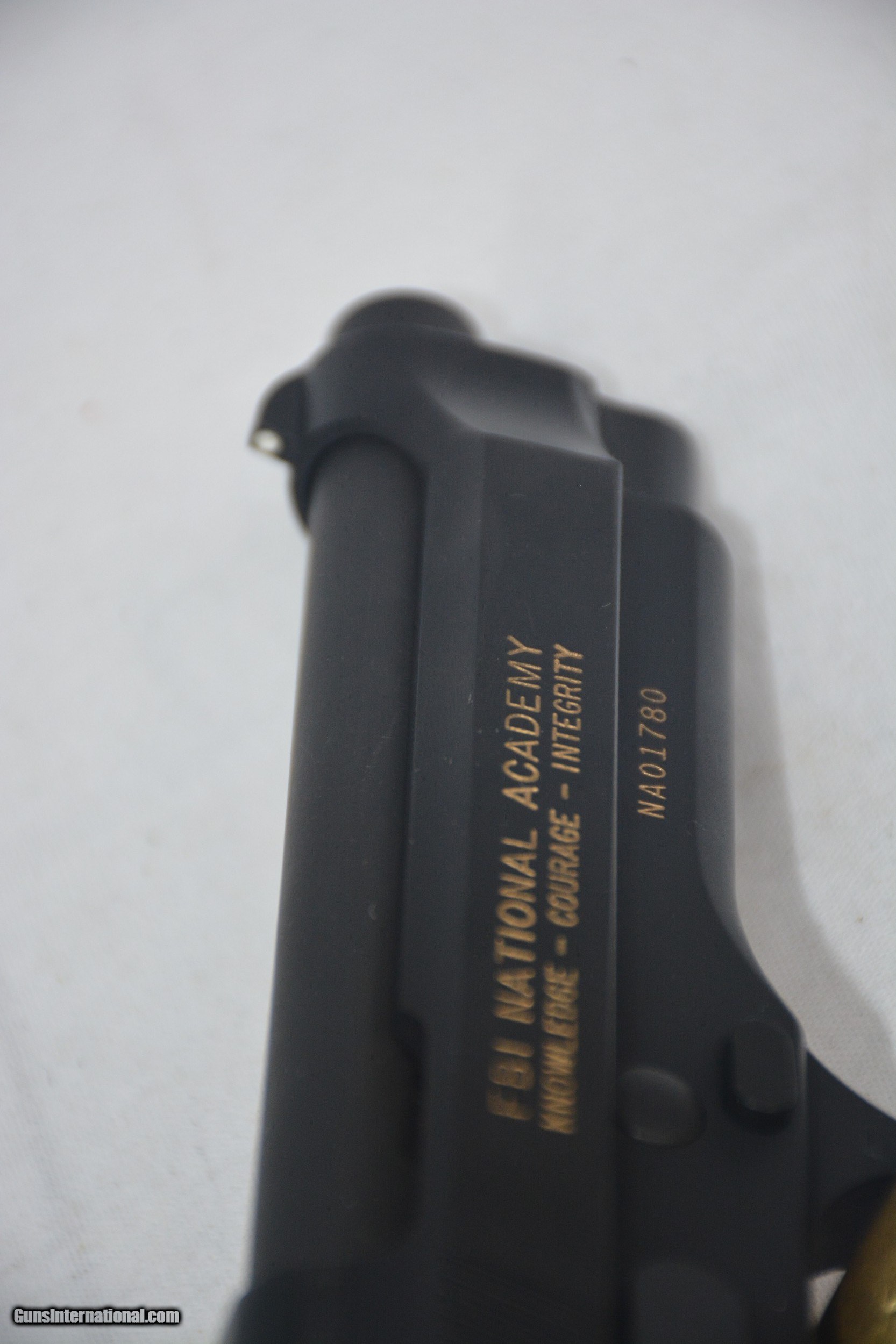 Description: Do you enjoy commemorative and memorabilia firearms? Do you enjoy fine Beretta firearms? If you said yes to either of these questions, this Beretta 92 FS is the gun for you! Chambered in 9mm, this Beretta 92FS has a dark, matte blued finish with dark wooden grips. The barrel is parkerized, and the frame features a lanyard loop. This particular pistol is an FBI National Academy commemorative and features the FBI National Academy crest on both sides of the grips that are secured via brass screws. The writing on both sides on the slide are painted golden. The right side of the slide has the inscription "FBI National Academy Knowledge - Courage - Integrity", and under this, on the frame is inscribed "NA01780", which denotes the graduate class that this pistol commemorates. This Beretta 92 comes with its original hard blue case, original paperwork, and an extra magazine. This pistol is a great option for the collector or for anyone who enjoys shooting great pistols. 90 day layaway is available for 20% down. 4% credit card fee. Some trades considered. Be sure to check our other listings for more great option for all your firearms needs! SOLD Manufacturer: Beretta Model: 92 FS Caliber Info: 9mm Condition: Used Action: Semi-Auto Finish: Blued |