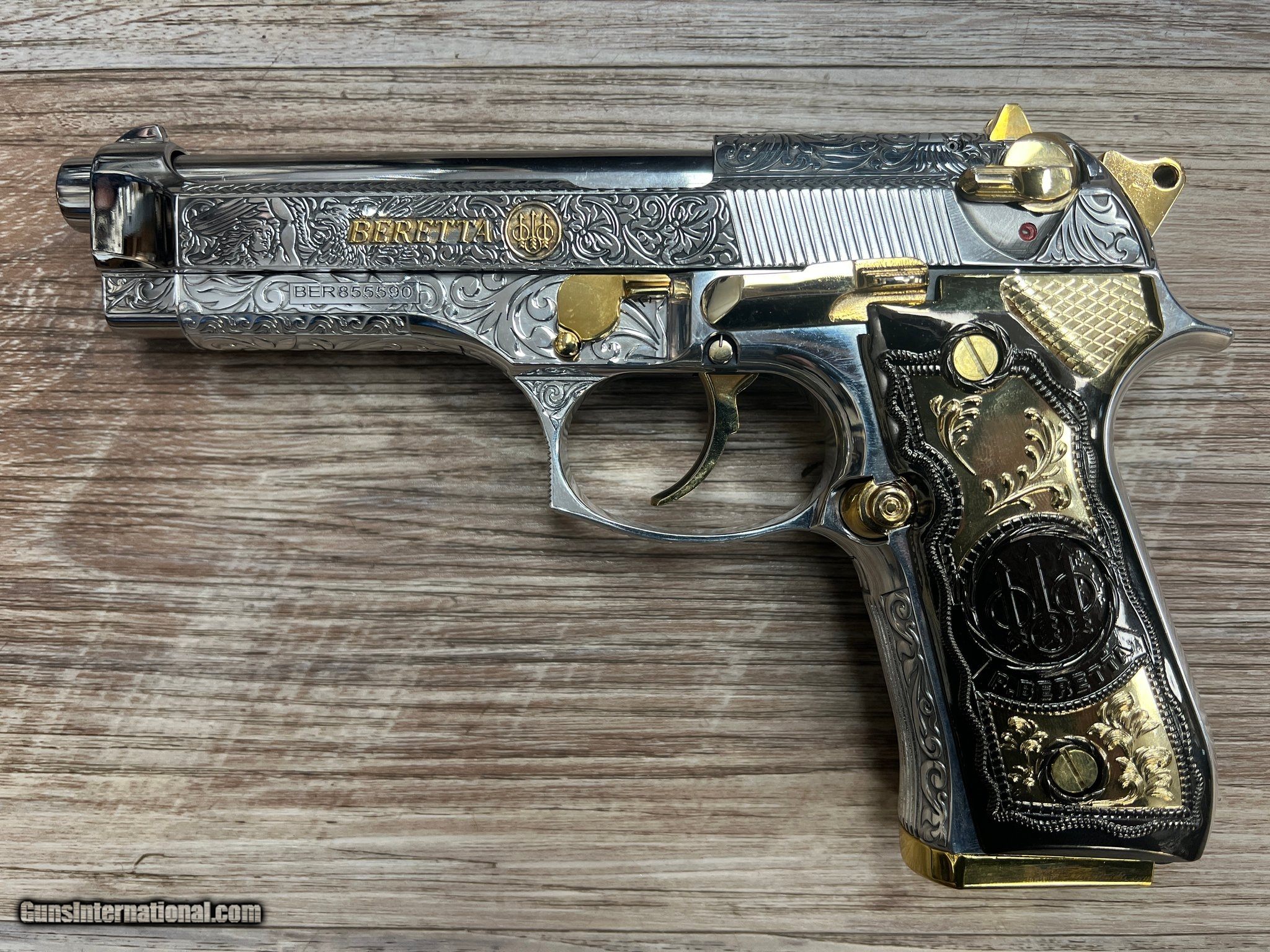 Description: Guns Listing ID: 469364 BRAND NEW GUN! This double action pistol has 5in barrel with three 15rd magazines and 100% engraved. SOLD Manufacturer: BERETTA Model: 92 High Polish Caliber Info: 9MM LUGER (9x19 PARA) Condition: Used - Non-Certified Barrels: 5 Finish: ENGRAVED STAINLESS |