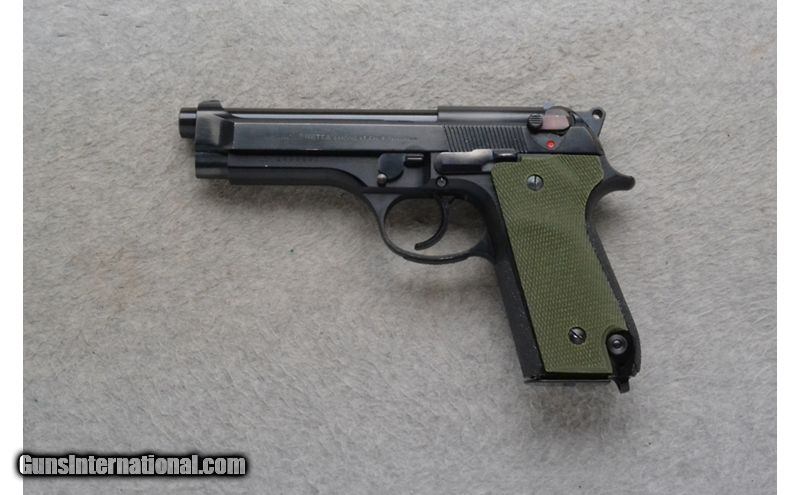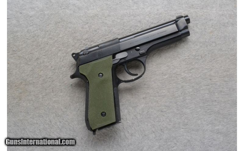 Description: This Beretta Model 92 S is a right hand semi-auto pistol in 9mm Cal. It has a 5 inch barrel with a rear serrated slide. A blade front sight and notch rear sight. The grip is a checkered O.D. Green polymer. It has a ringed serrated hammer. 9mm Parabellum SOLD Chambers: 15 round magazine. Metal Condition: Good. Some very minor handling marks. Bore Condition: Very good. Barrels: 5 inch barrel with a rear serrated slide. Triggers: Double Action. Weight: 32 oz. Sights: Blade front. Notch rear. Item Location: Richfield, WI |
