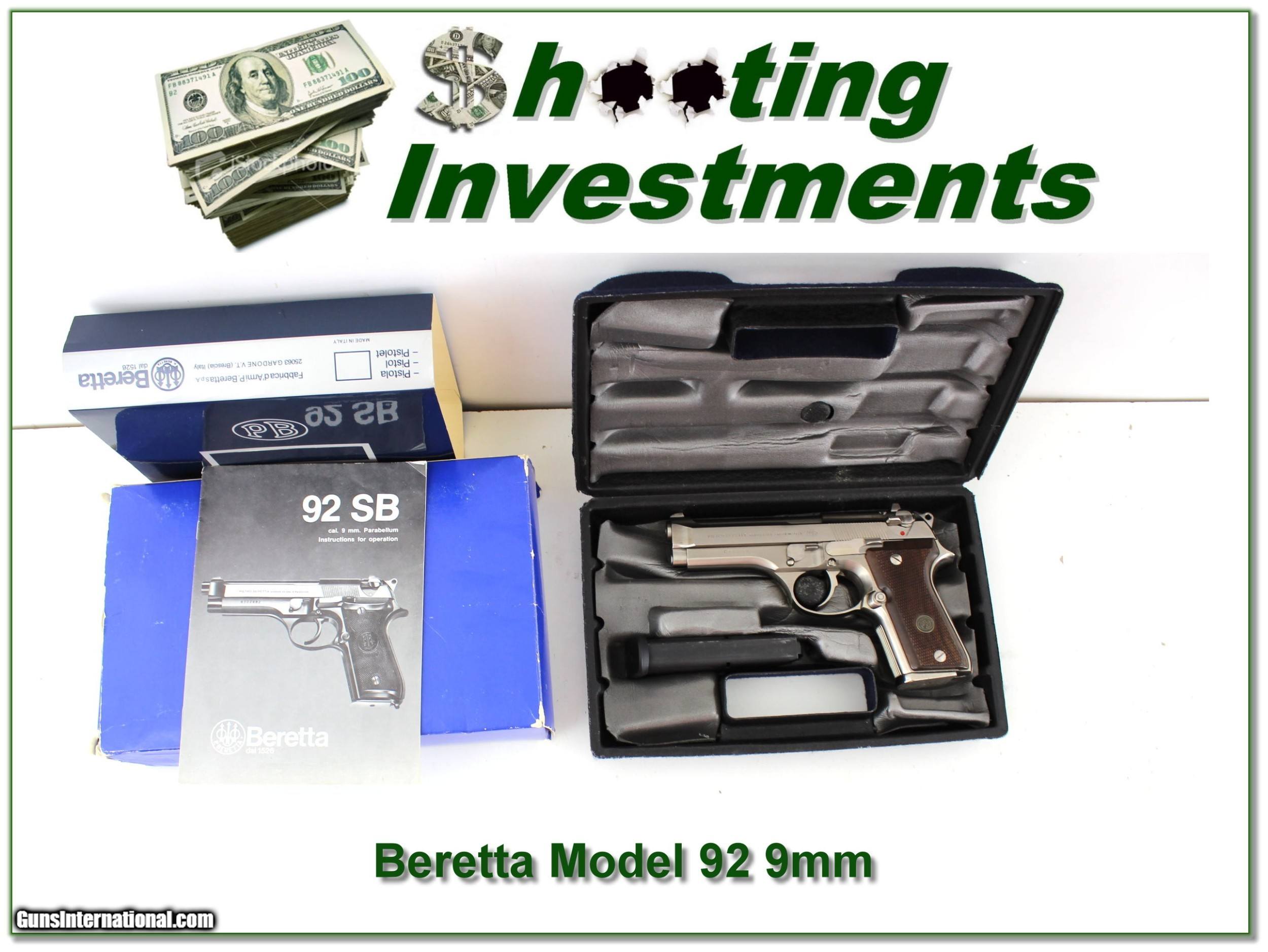 Description: Collectors, this is rare chance to buy a Beretta 92 SBC 9mm. It is Nickel and Compact and unfired in case with box! You can’t find a nicer one! I am selling this one on consignment and as such lay-a-way can’t be used. It does of course have the standard 3-day inspection. Shipping and insurance is $39. Please email me with any questions or larger pictures. (Consign your quality firearms with Shooting Investments for only 12%! Let me know if you have any you would like to sell!) 21-1255 Payment: Payment is by Money Order, Cashiers Check or Personal Check. I can now also accept Credit Cards (MasterCard, Visa, Discover & American Express) with a 3% convenience fee. Shipping: The shipping charge will be listed in each description. It is $39 for most firearms. Some heavy guns or those insured for over $2000 will be higher. Shipments to Alaska and Hawaii are higher because air shipment is required. Most firearms are shipped on Tuesday and Thursday and usually in 5 days of receipt of payment. We package all shipments carefully and insure them. Optics are shipped Priority Mail and most other non-firearm shipments are shipped First Class. Returns: Our return policy is simple. If for any reason you are not pleased with your purchase, you may return your item for a full refund of purchase price. Ammunition cannot be returned. It is important to us that you are happy. Guns cannot be fired or dissembled before returning them and they must be returned in the same condition as received. Notification of a return must occur with-in 3 days of receipt at your dealer. Shipping, convenience and dealer fees are not refundable and are the responsibility of the buyer. Lay-a-way: If needed, we offer a 60 day lay-a-way option on most firearms. It is 1/3 now, 1/3 in 30 days and 1/3 in 60 days. Lay-a-way firearm sales are final and if not completed the first payment cannot be returned. Consigning your firearms with Shooting Investments: We will help you get top dollar for your firearms. While most local guns shops charge 20% or more, our fee is only 12% with a minimum of $75. At your local gun shop it might take months to sell. Selling on-line provides instant access to thousands of interested buyers. You won’t find any other on-line dealer willing to sell your firearms for only 12% or listing every gun on 3 separate s. Selling through an House typically costs the seller 15% and the buyer an addition 15% (so 30%) and you have to wait several months to sell and longer to receive funds. If properly priced, we will sell your firearms in a few weeks. Send us an email or give us a call and we’ll explain how easy it is for you to get top dollar. Trading: Trading for use is really just buying your gun to re-sell. If you have a gun you want to trade, please email a picture and we will let you know what we can give or it. You will always get more if we sell it for you on consignment. Help for California Buyers: We are happy to ship to California. It is the buyer’s responsibility to make sure any item you buy is legal in your state. We are also happy to help with your purchase of a firearm from someone other than us. If you see a gun you would like to buy but the seller can’t or won’t ship to California they can ship to use and we’ll then ship it to your California dealer. The cost for this service is only $30 + shipping. Let us know if we can help! SOLD |