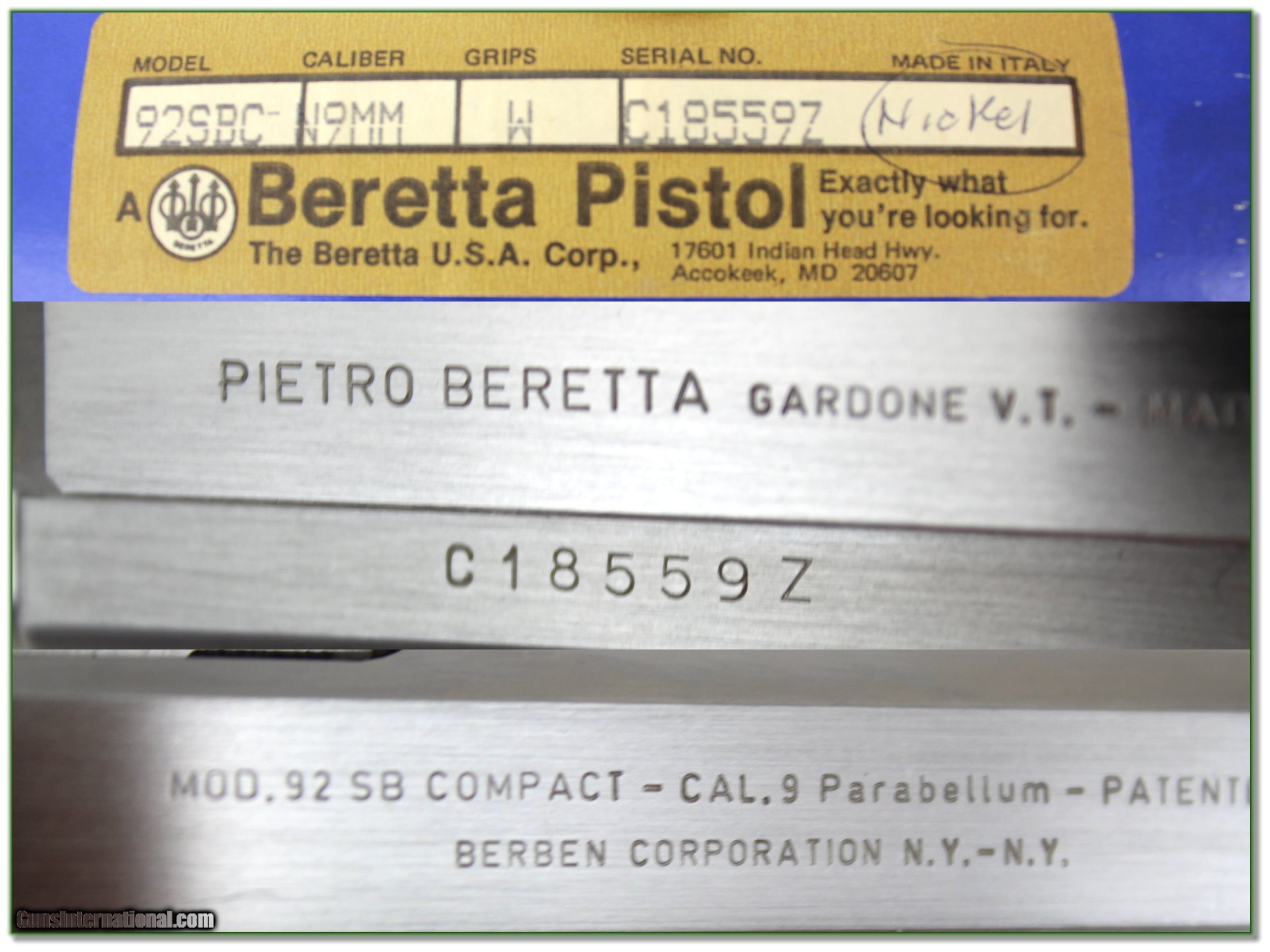 Beretta 92 SBC RARE Nickel Compact 9mm NIB!