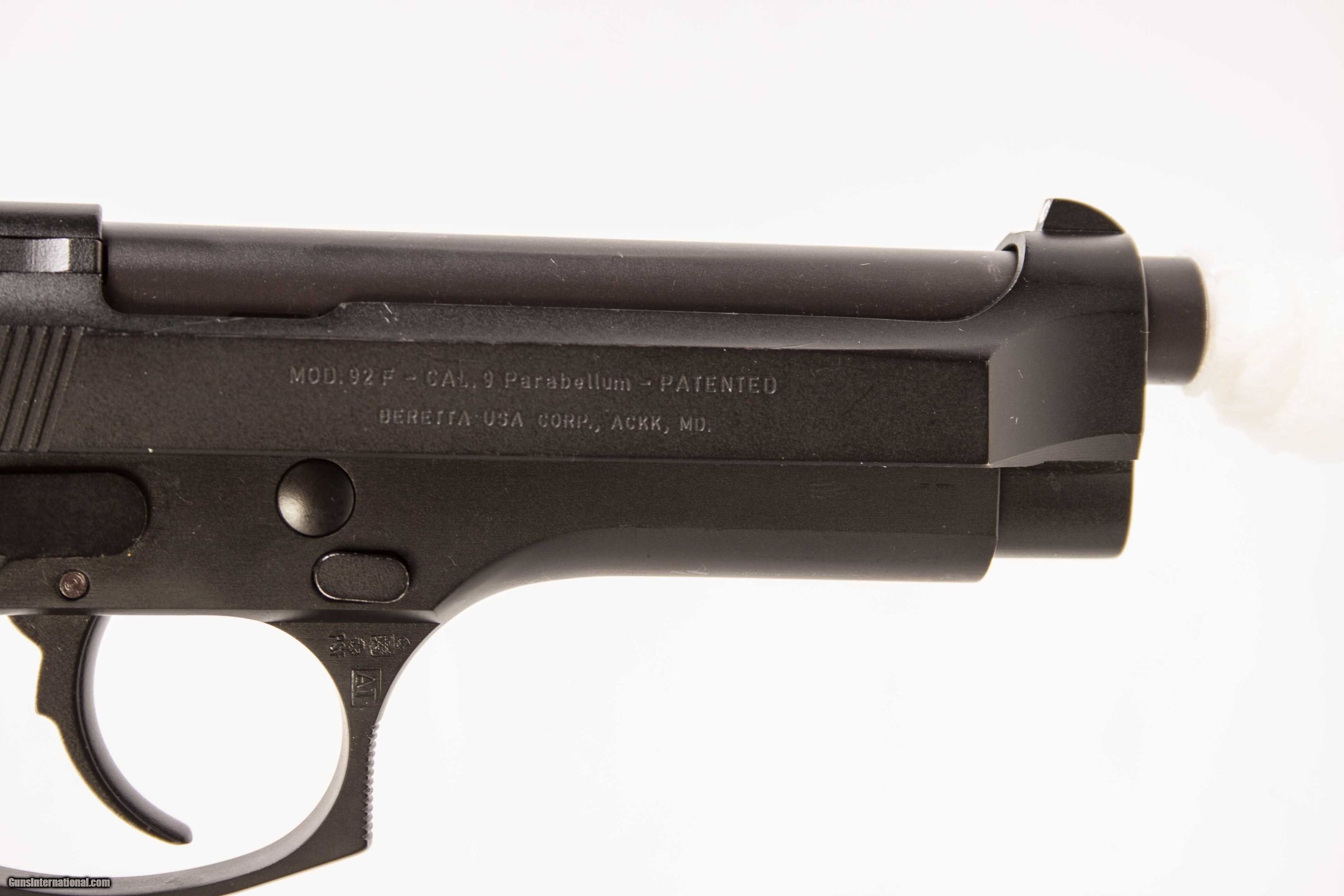 Beretta 92F chambered in 9mm with a 5 inch barrel bright bore good grooves case and 1 extra magazine. This gun is in excellent condition and is covered by Dury's Lifetime Warranty.