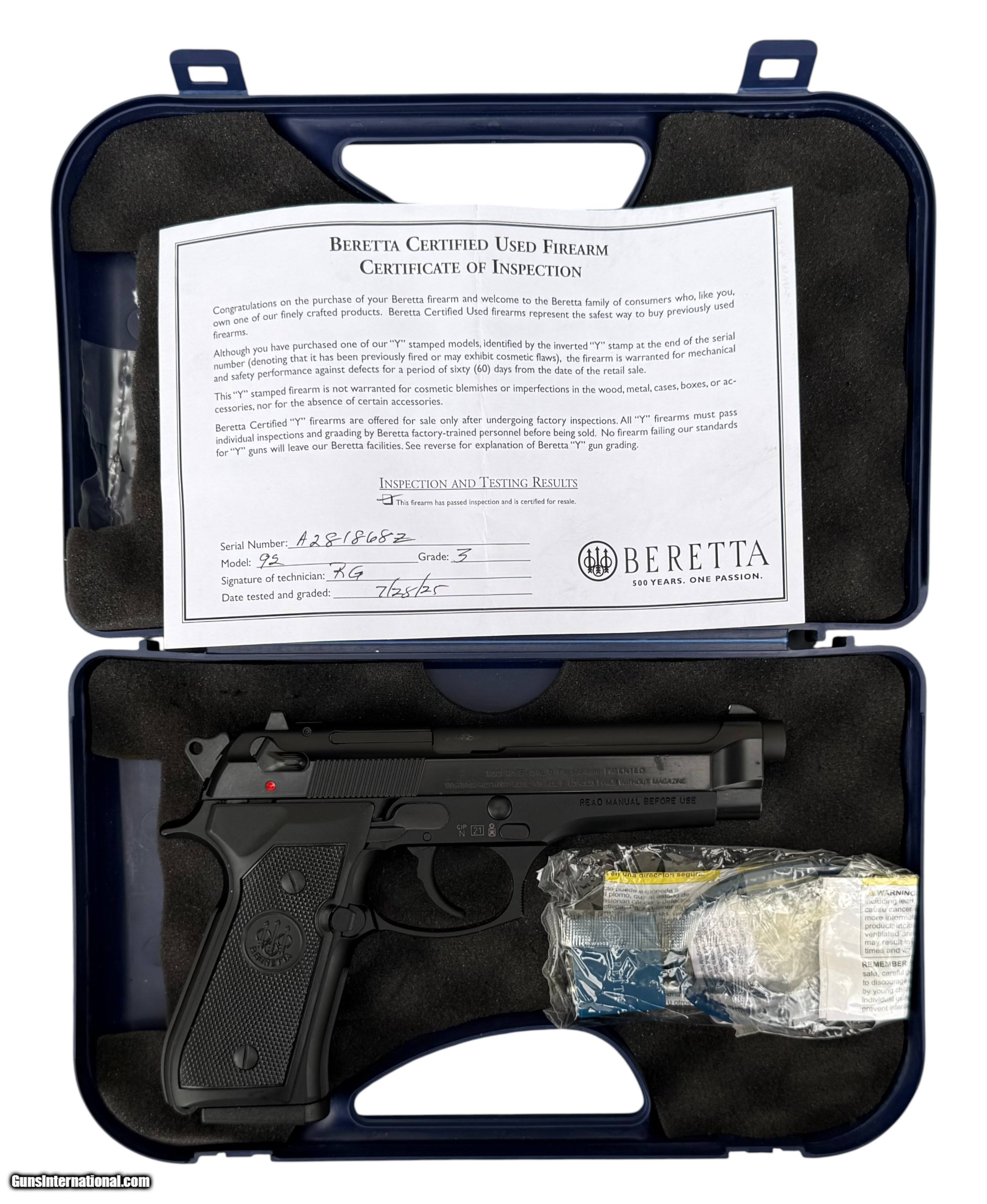 Beretta 92FS 9mm 15 Round Capacity Italy Y Model Grade III JS92F300M-1