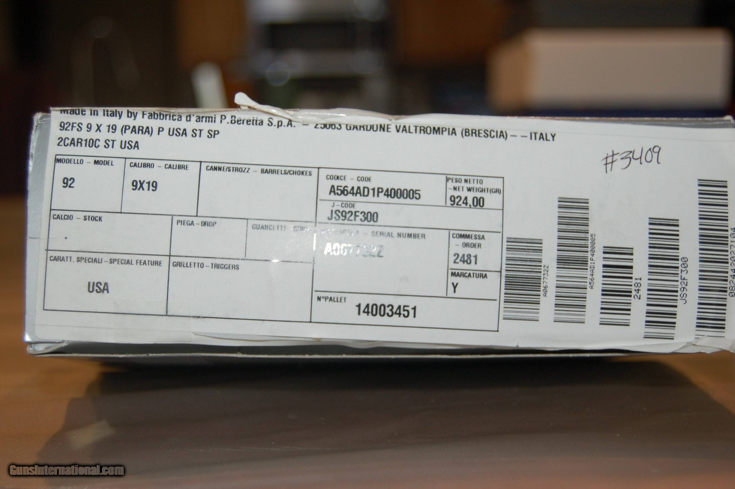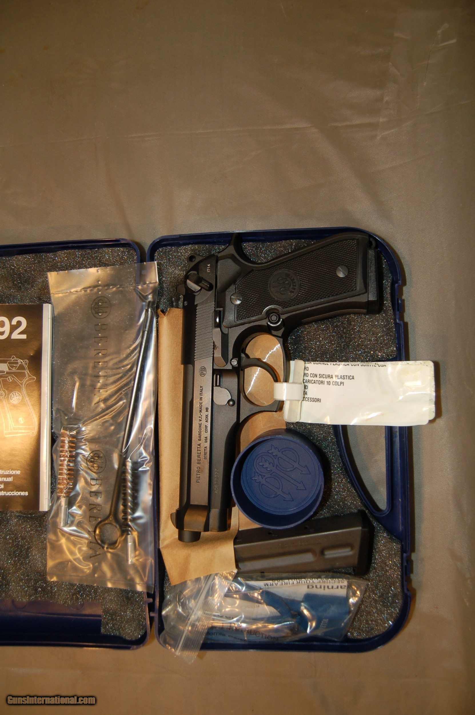 Description: This Italian Beretta has never been fired since purchased new. Great capacity and accuracy. Comes with owners manual, 2 magazines, cleaning kit and case. Like new in box. SOLD Manufacturer: Beretta Model: 92FS-9 Serial Number: A0677327 Caliber Info: 9mm Condition: Like new in box |