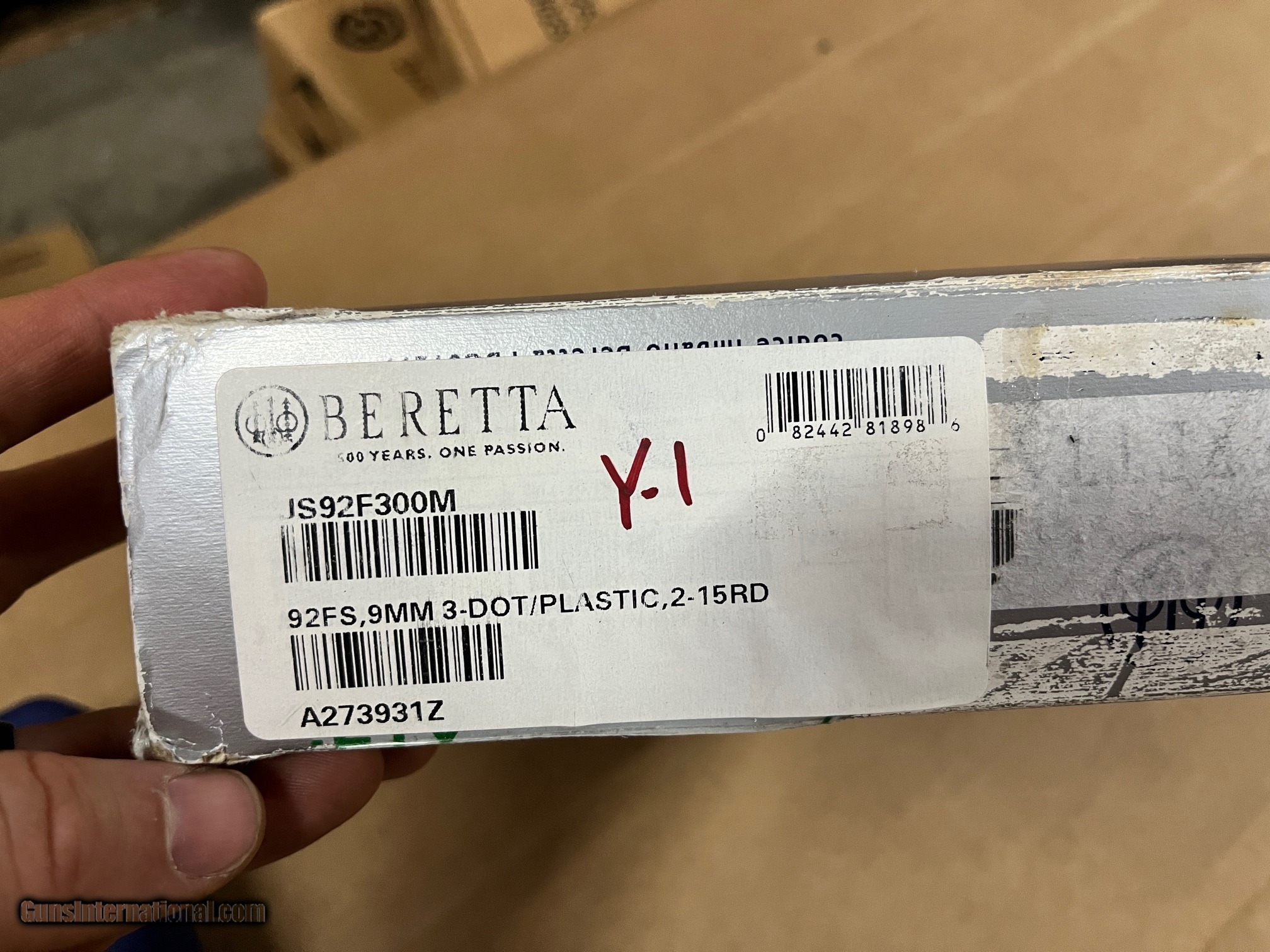 Beretta 92FS 9mm – Certified Used Y1, 3-Dot Sights, 2x15rd, Made in Italy