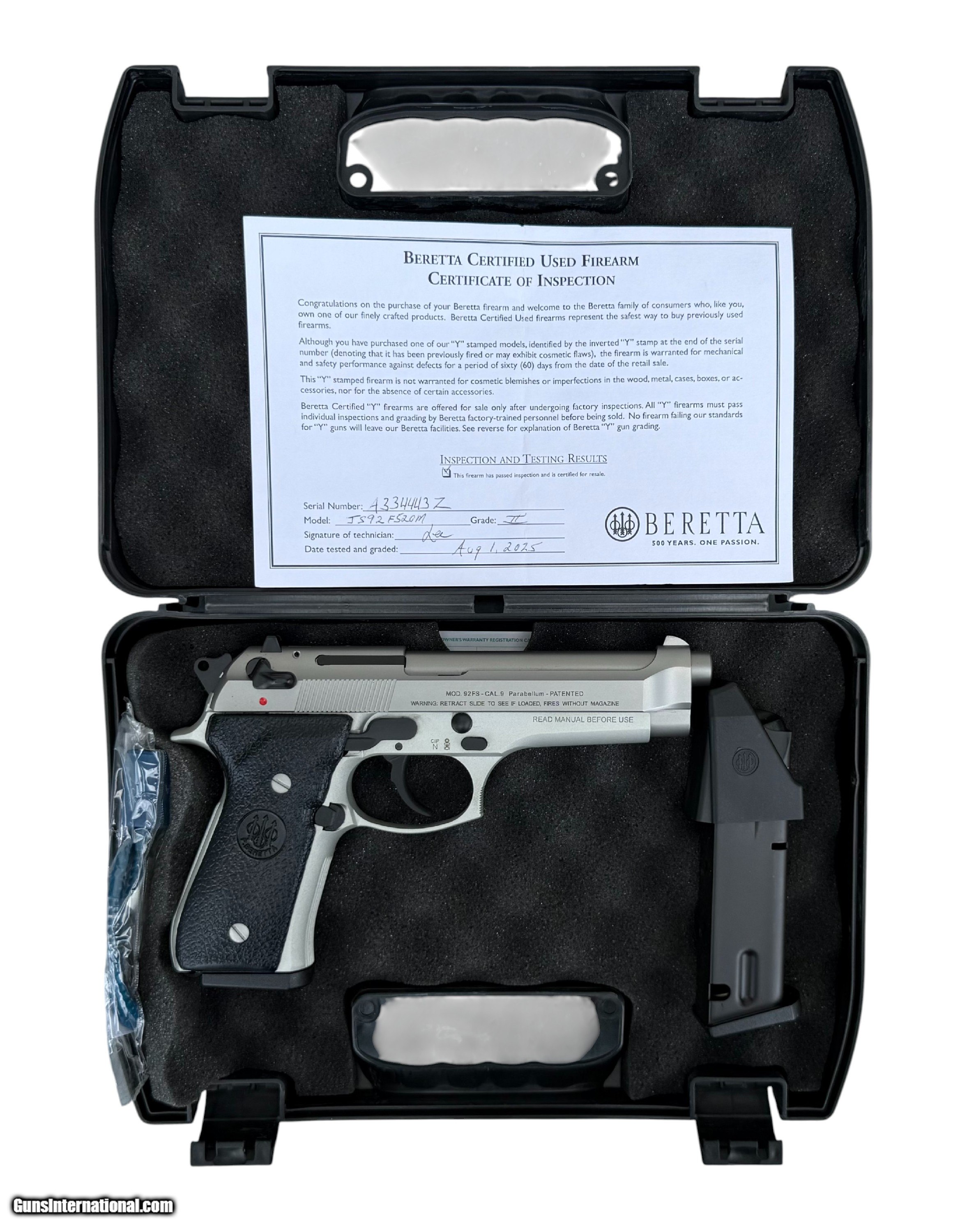 Beretta 92FS 9mm Inox Stainless Made in Italy 15 Round Capacity Y Model JS92F520M