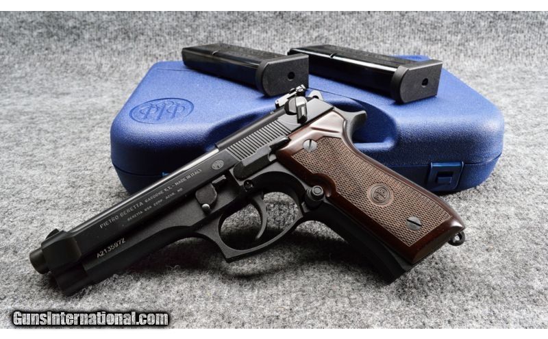 Description: Humid jungles, desert heat and snow-covered mountains – there is no environment on the planet that the Beretta 92 pistols haven't seen. For years, Beretta pistols have been an issued side arm of America's armed forces giving them a long record of distinguished service. Count on their reliability and accuracy for personal or home protection. Made by Beretta in Italy, this all-metal firearm closely resembles the standard military-issue model. The open-slide, short-recoil delayed locking-block system virtually eliminates jamming and it yields a faster cycle time. Black, nonglare Bruniton finish provides a wear-resistant coating. Double-action/single-action operation. Ambidextrous safety decocker. Reversible magazine release. This model features checkered walnut grips with Beretta medallion inserts, a target rear sight, and a skeletonized hammer. Chambered in 9mm with a 17+1 capacity, this 92FS is like-new-in-box and comes with the factory hard case, paperwork, and two 17 round magazines. SOLD Caliber Info: 9mm Para Chambers: Semi-auto Metal Condition: LNIB Wood Condition: LNIB Bore Condition: LNIB Barrels: 5 inch Triggers: Double action/single action Butt Pad: Checkered walnut grips with Beretta medallion inserts Weight: 33 oz Sights: White 3 dot, target rear Extras: Factory hard case, paperwork, and 2 17 round magazines (total) Item Location: Gainesville, VA |