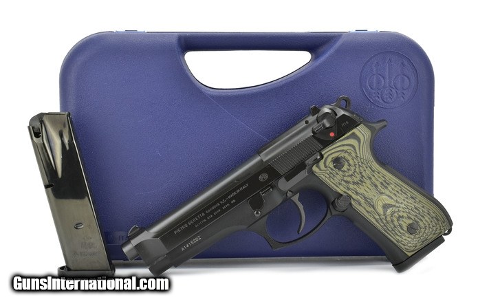 Beretta 92FS 9mm caliber pistol. U.S. made gun customized with Wilson Combat trigger and hammer, slick action job and G10 grips. Shows a bit of carry wear, very good condition with box and extra magazine.