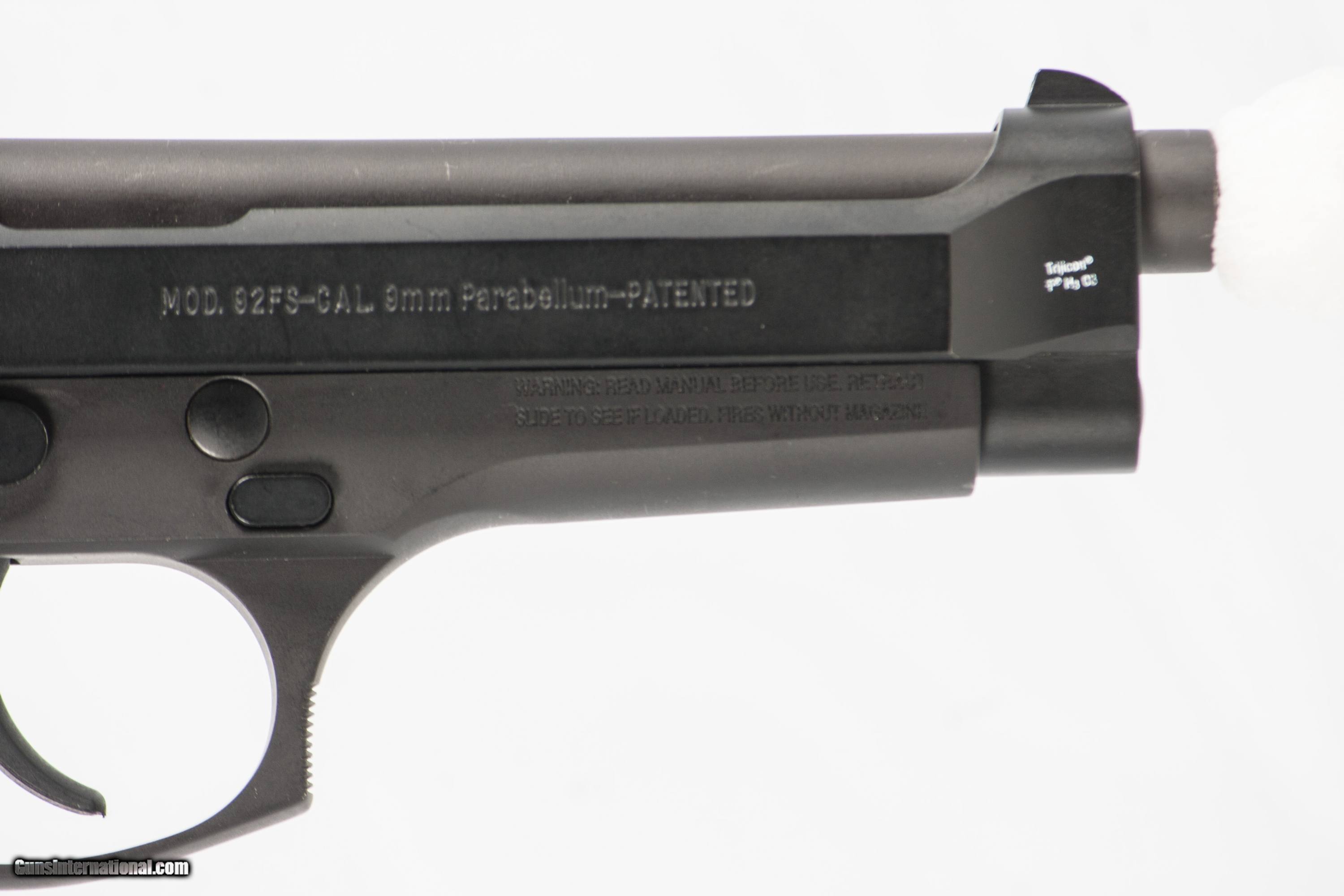 Beretta 92FS chambered in 9mm with a 5 inch barrel bright & shiny bore Trijicon night sights and 2 extra magazines. This gun is in excellent condition and is covered by Dury's Lifetime Warranty.