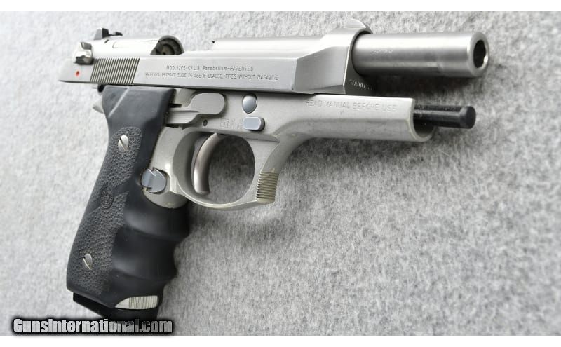 Description: The Beretta® 92FS Inox is one of the most extensively tested and duty proven Semi-Auto Pistol designs in existence. The 92FS, or M9, has been the official sidearm of the US Military since the 1980s. The Beretta 92FS Inox has all the same features as the M9 semi-automatic pistol, only with stainless steel slide, barrel, and internal parts to increase its resistance to corrosion and ease of maintenance. The alloy frame is anodized to match. Only one magazine provided. 9mm Luger SOLD Chambers: 9 mm Luger in a fifteen round detachable magazine semi-automatic pistol Metal Condition: "Good, shows some holster wear at the dust cover and slide Wood Condition: Rubber Hogue Wraparound Grip Bore Condition: "Good, sharp and bright Barrels: 4.75" Stainless Steel Triggers: Single/Double Action Weight: 34 oz. Sights: "Fixed front, drift adjustable leaf rear Item Location: Grand Junction, CO |