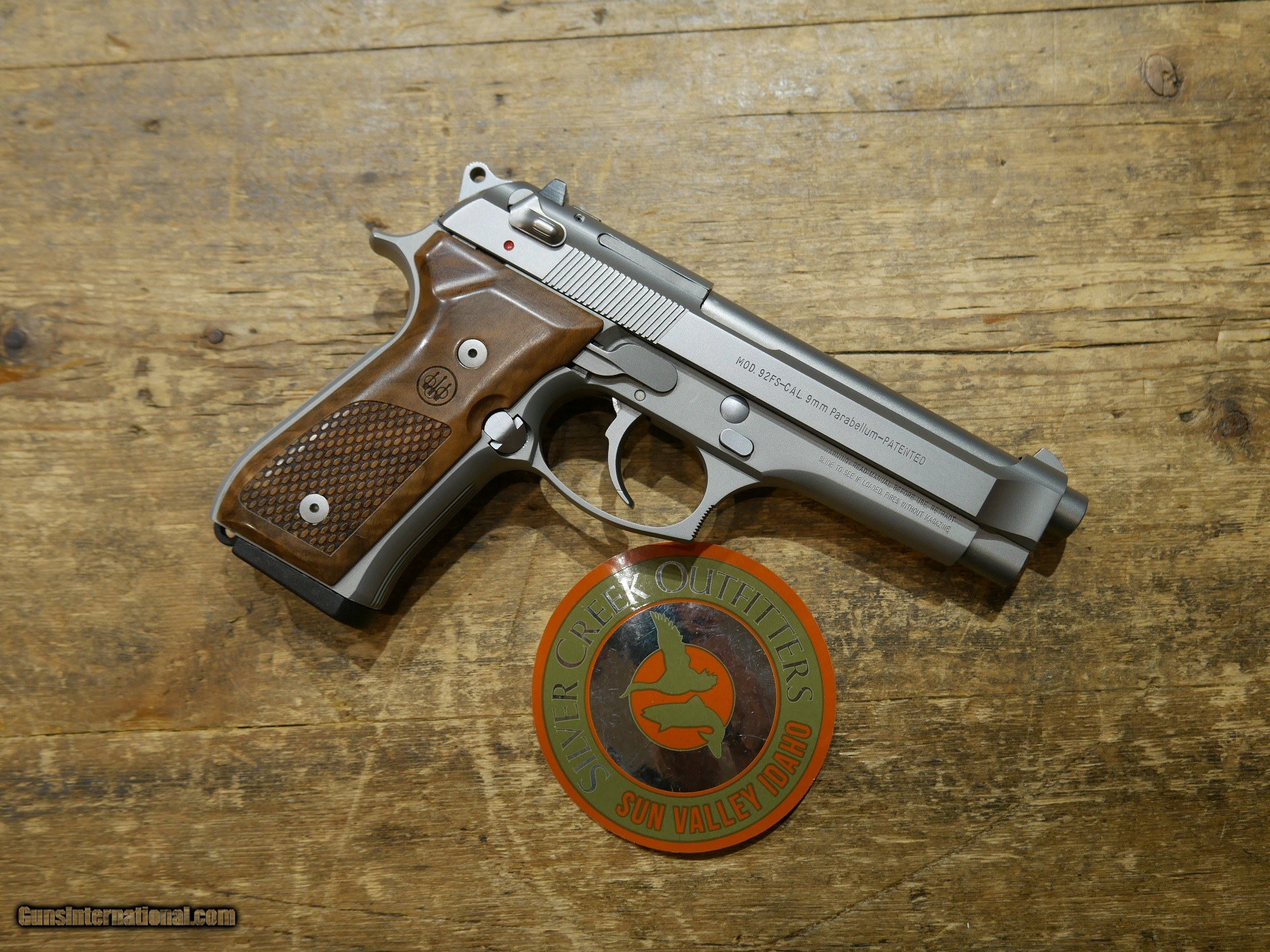 Description: ***COMES WITH 11 TOTAL MAGS AND ORIGINAL GRIPS*** Beretta 92FS INOX semi-auto pistol in 9mm Luger. INOX stainless steel slide, frame and barrel. 5" barrel. 3-Dot red dot sights. Beretta wood grips installed plus the original rubber grips included. MADE IN USA in 2002. Decocker/safety. Comes with 7 15-rd mags, 2 10-rd mags, 1 19-rd mag and 1 32-rd mag. This gun is used but in very good overall condition. There's a few very light handling marks, everything checks out in the function-test but we have not test fired it. See pics for all details. Please call or email with any questions. Must ship to FFL. ***$40 SHIPPING AND INSURANCE*** ***NO CREDIT CARD FEES*** ***ALL WARRANTIES ARE HANDLED BY THE MANUFACTURER*** ***NO WARRANTIES THROUGH SILVER CREEK OUTFITTERS IMPLIED OR EXPRESSED*** ***MUST CALL TO COMPLETE TRANSACTION*** ***PLEASE BE IN CONTACT WITH A RECEIVING FFL AND BE PREPARED TO PROVIDE THEIR EMAIL ADDRESS OR AT LEAST THEIR PHONE WHEN MAKING PAYMENT*** SOLD Handgun Caliber: 9x19mm Parabellum (9mm Luger, 9x19mm NATO) Manufacturer: BERETTA Model: J92F500 Condition: NIB |