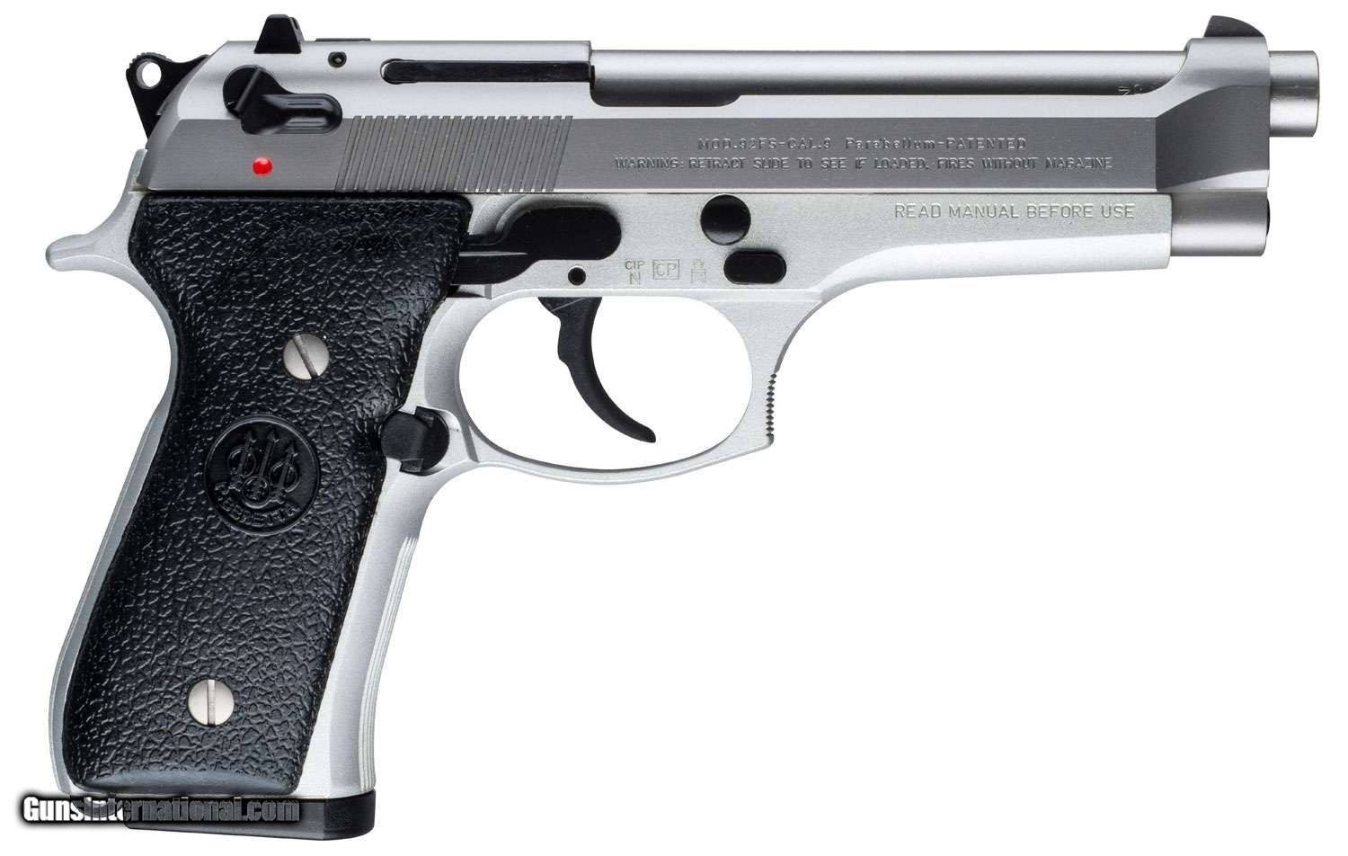 Description: NEW IN STOCK Beretta 92FS, Double Action/Single Action, Semi-automatic, Metal Frame Pistol, Full Size, 9MM, 4.9" Barrel, Alloy, Stainless Finish, 15 Rounds, 2 Magazines JS92F520M