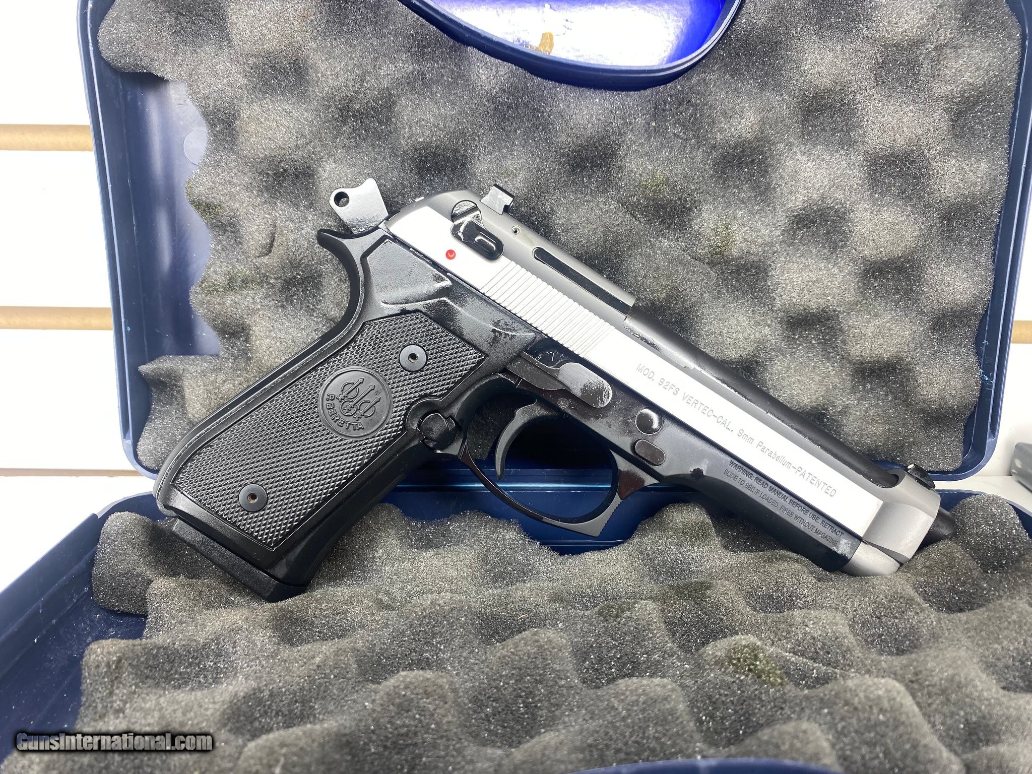 Description: Guns Listing ID: 578758 Caliber: 9×19mm Parabellum Action: Short-recoil, locked-breech, DA/SA (double-action first pull, single-action subsequent) with manual safety/decocker (on many models) Barrel length: ~4.9 inches (125 mm) (typical full-size) Overall length: ~8.5 inches (varies slightly by variant) Weight (unloaded): ~32–34 oz (around 900–960 g) depending on configuration Magazine capacity: commonly 15 rounds (standard M9/92FS magazines) — other capacities exist for different markets or aftermarket mags Frame / Slide: Alloy frame with steel slide (robust service pistol construction) Note: exact numbers can vary by sub-model and market (e.g., 92A1, 92X, etc.). If you need the exact factory spec for a particular serial/model stamp, say so and I’ll list precisely what to check on the gun itself. Main differences: 92FS vs M9 vs Vertec 92FS vs M9: Largely the same mechanically. “M9" is the military designation. The 92FS introduced improvements over older 92F designs (modern safety/decocker, firing-pin safety, small refinements). M9 spec may include military finish, checkering, magazines and hardware to MIL-SPEC. Vertec vs 92FS/M9: Vertec changes are primarily ergonomic: different grip shape (flatter backstrap & different finger groove area), sometimes a lower bore axis and a squared trigger guard for modern two-handed holds. Controls may be slightly different to allow different accessory/optics options. Mechanically it remains the 92 pattern. (2)15 RND MAGS comes in original box and papers SOLD Manufacturer: BERETTA Model: 92FS VERTEC/M9 Caliber Info: 9MM LUGER (9x19 PARA) Condition: Used - Non-Certified Barrels: 5" BARREL Action: SEMI AUTOMATIC Finish: black & stainless |