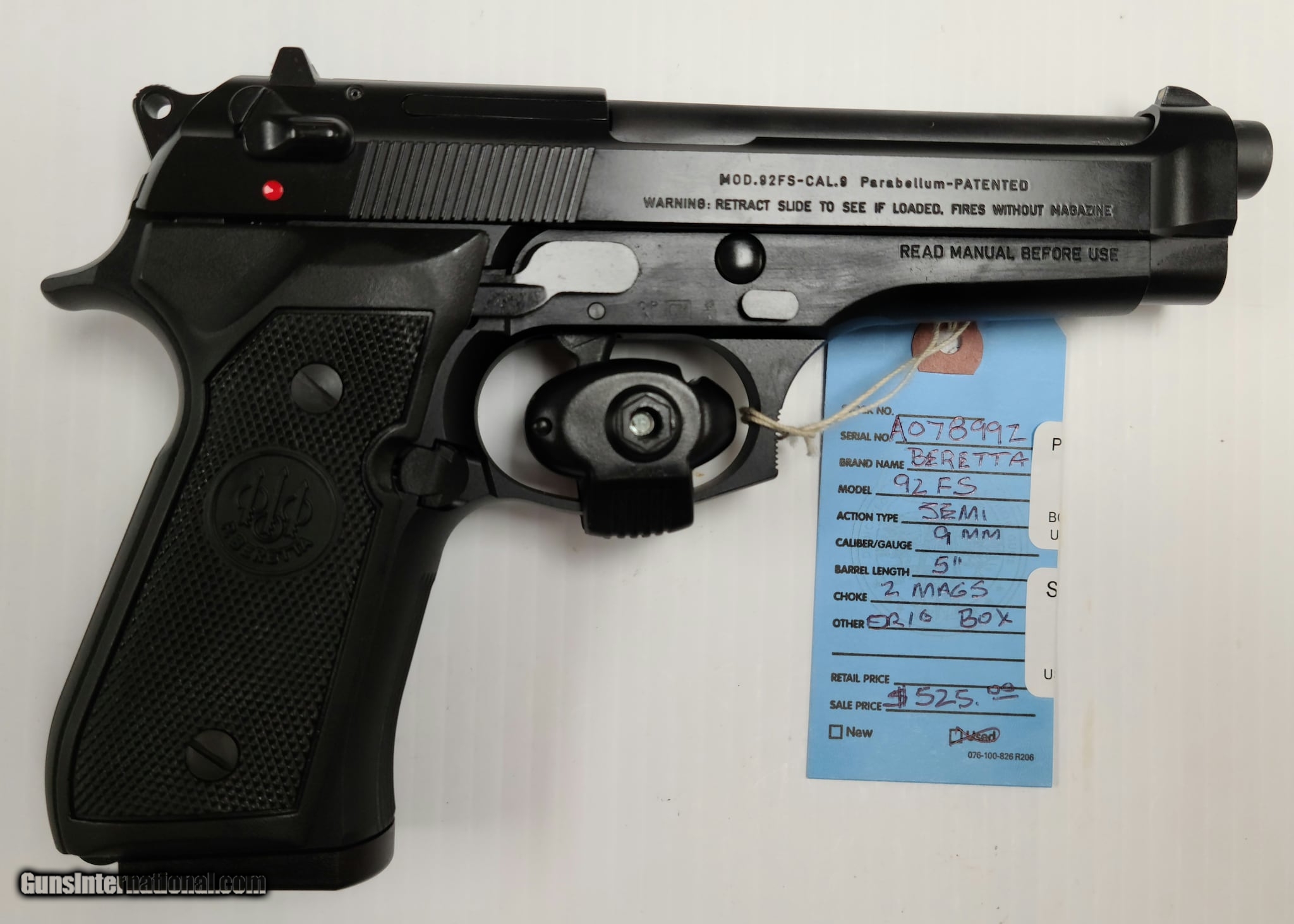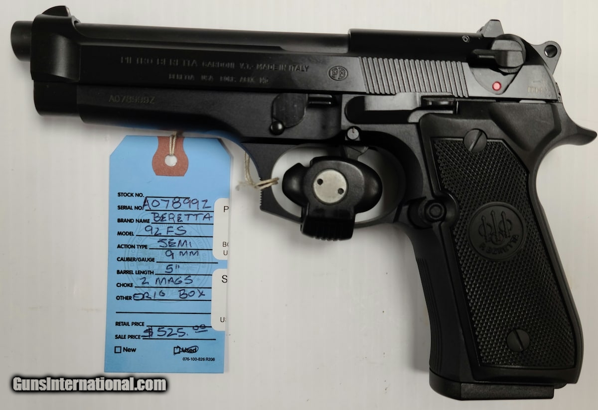 Description: Guns Listing ID: 707589 OUTSTANDING PRE-OWNED BERETTA 92FS WITH ORIGINAL BOX AND 2 MAGAZINES. NO MARKS, SCRATCHES, DENTS OR DINGS. APPEARS LIKE NEW. We put all the information we have about these guns / items on the blue shop tags and the on-line listing. PRICES ARE FIRM, NO OFFERS ACCEPTED . Not interested in trades. We do not offer layaway. We reserve the right to sell this item in our store or on other s at any time. Please be certain that you want this item as all sales are final. Used guns and parts almost always have some small degree of imperfection visually, and we do not have the ability to test fire, so we are never 100% certain of the functionality. No warranty is stated or implied. SOLD Manufacturer: BERETTA Model: 92FS Caliber Info: 9 MM Condition: Used - Non-Certified Barrels: 5 BARREL Finish: BLACK |