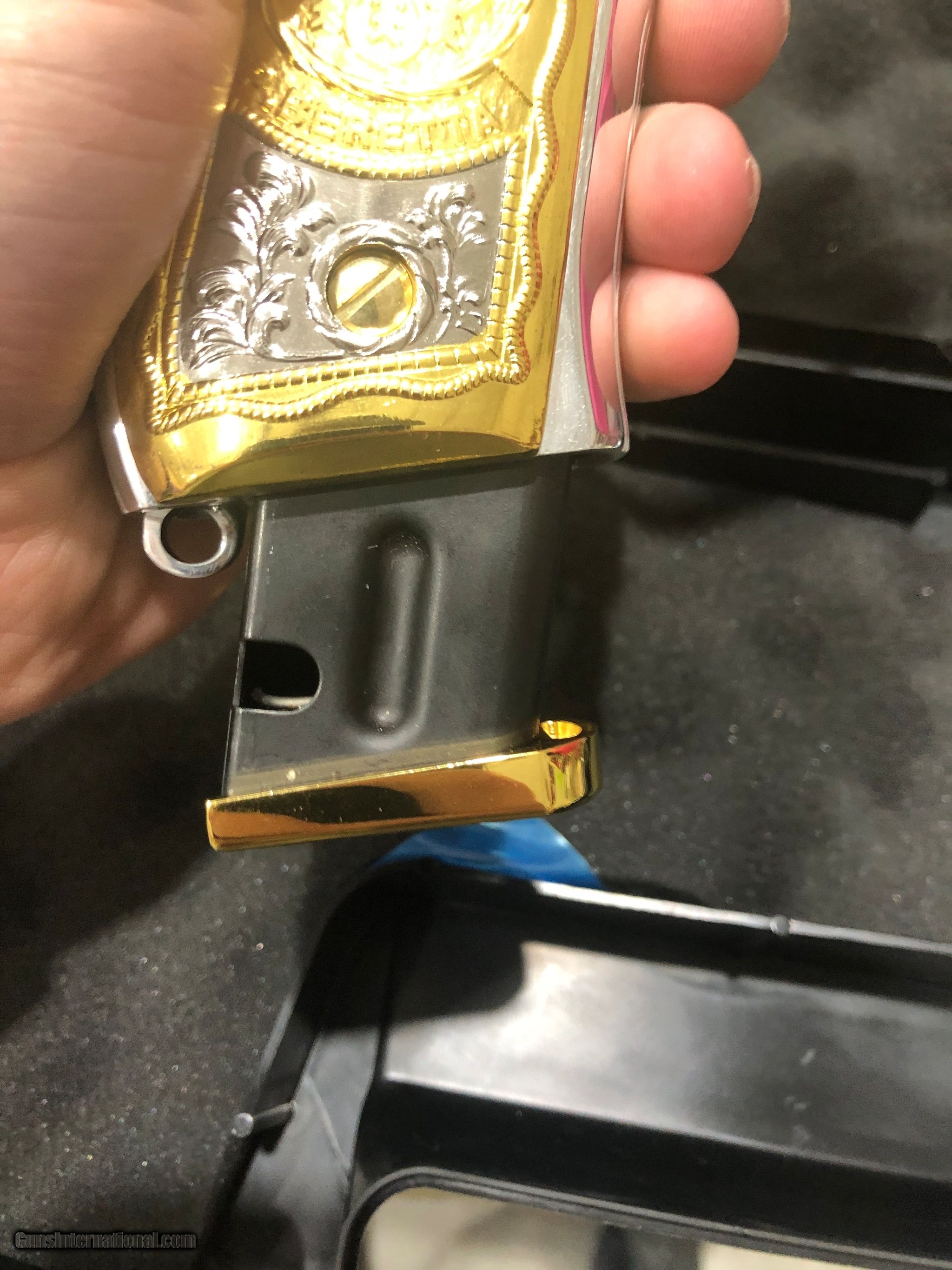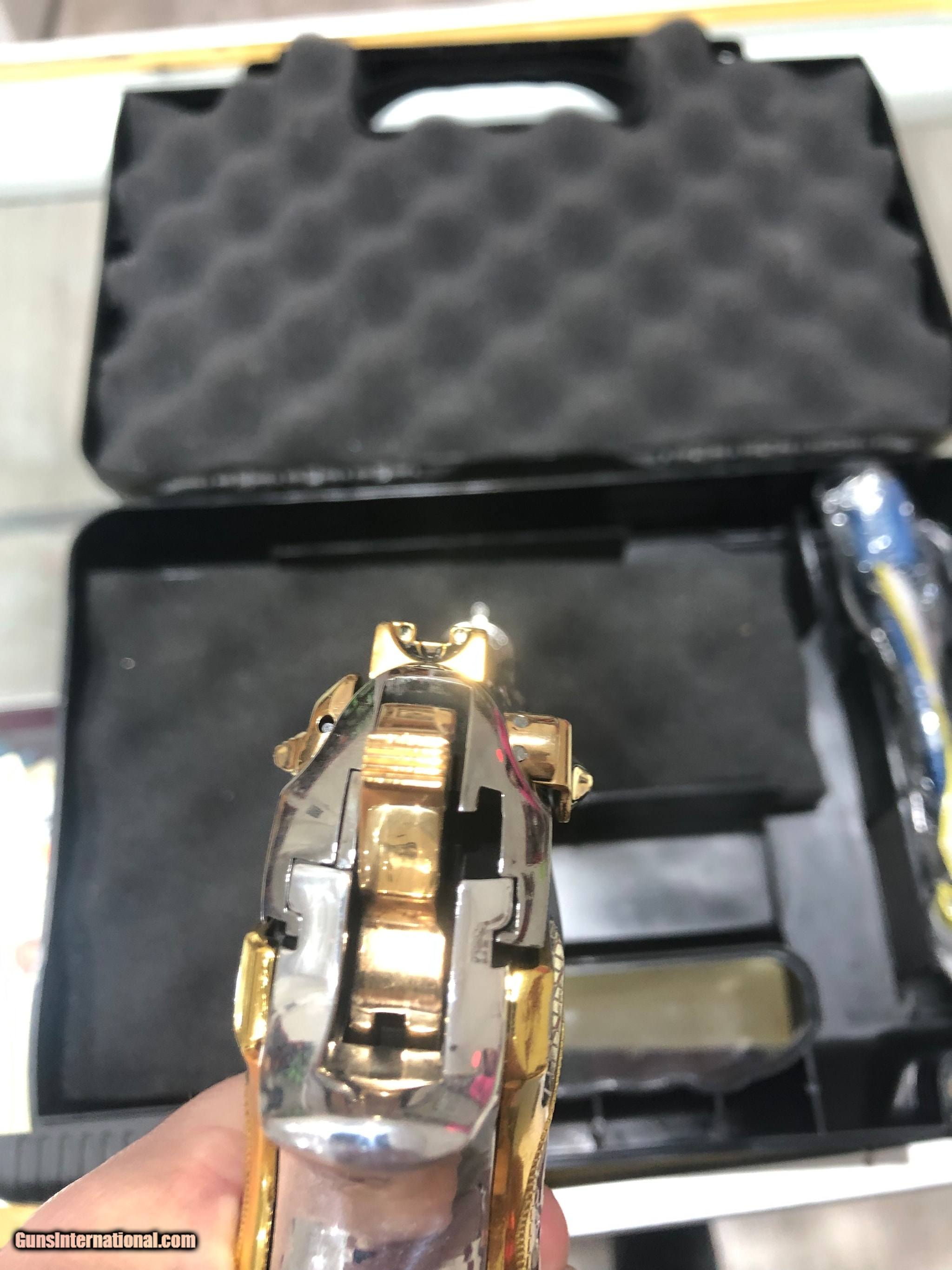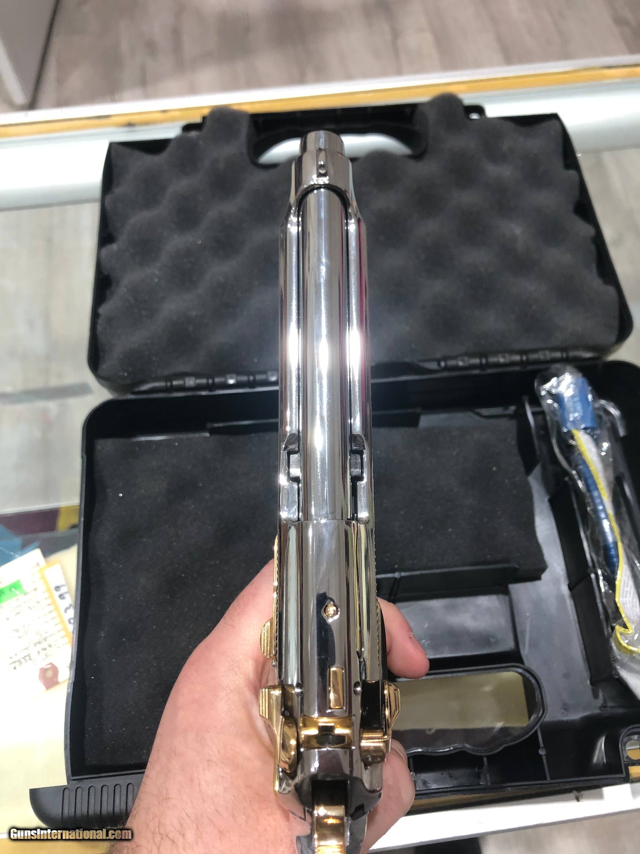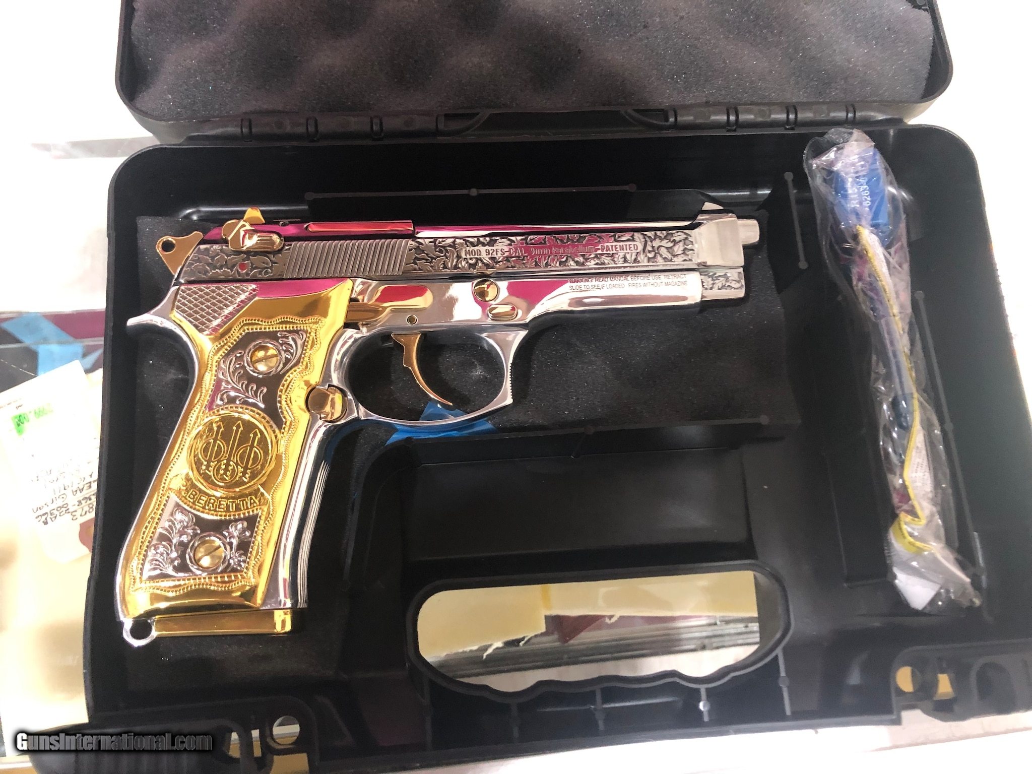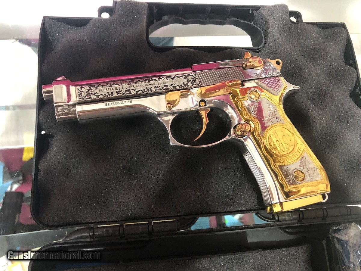 Description: Guns Listing ID: 672592 Beretta 92FS with nickel plating, engraving, and gold plating. Was done post manufacture date. SOLD Manufacturer: BERETTA Model: 92FS Caliber Info: 9MM Condition: Used - Non-Certified Barrels: 5 BARREL Finish: NICKEL |