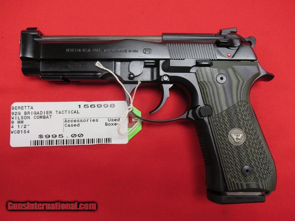 Description: Beretta 92G Brigadier Wilson Combat 9mm 4 1/2" -- This gun has some discoloration to the barrel finish only and one handling mark to the rail on the bottom of the frame. Good condition overall. SOLD |