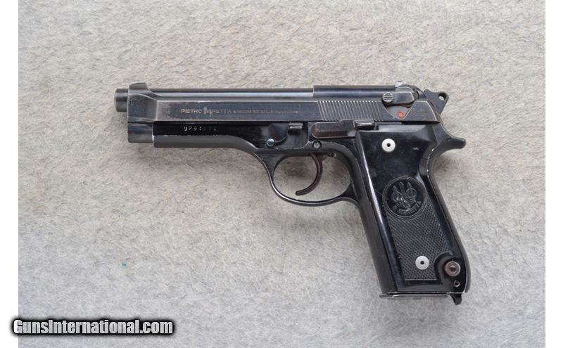 Description: This Beretta Model 92S is a right hand semi-auto pistol in 9mm Cal. It has a 5 inch barrel with a rear serrated slide. A blade front sight and a notch rear sight. The grip is a textured hard black plastic with the Beretta trident. It has a ringed serrated hammer. 9mm Parabellum SOLD Chambers: Semi-Auto 15 round magazine. Metal Condition: "Fair. Has some blue wear, minor freckling and minor handling marks. Bore Condition: Very good. Barrels: 5 inch barrel with a rear serrated slide. Weight: 34 oz. Sights: Blade front. Notch rear. Item Location: Richfield, WI |