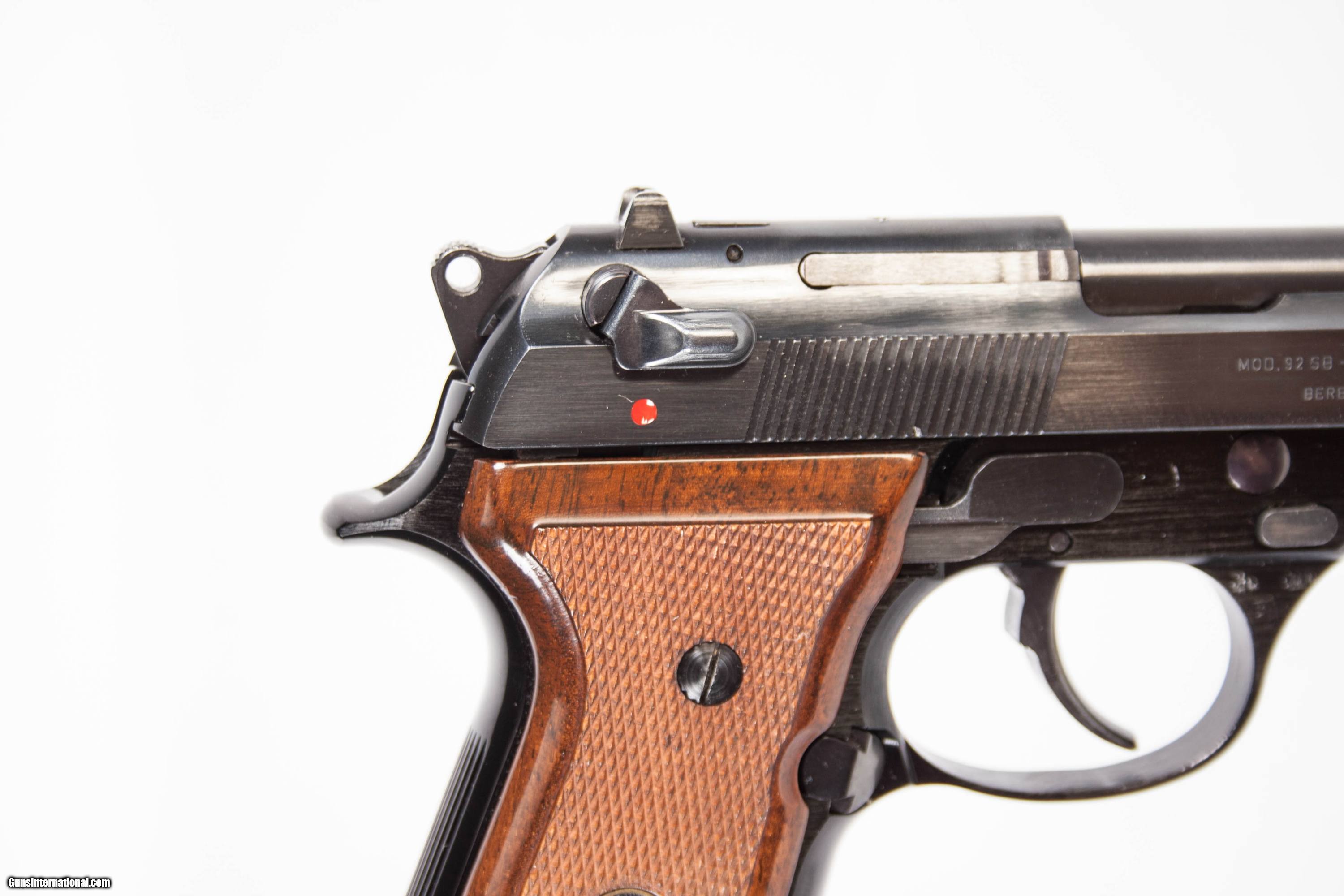 Description: Beretta 92SB chambered in 9 mm with a 5 inch barrel bright bore good grooves box and 1 extra magazine. This gun is in excellent condition and is covered by Dury's Lifetime Warranty.
