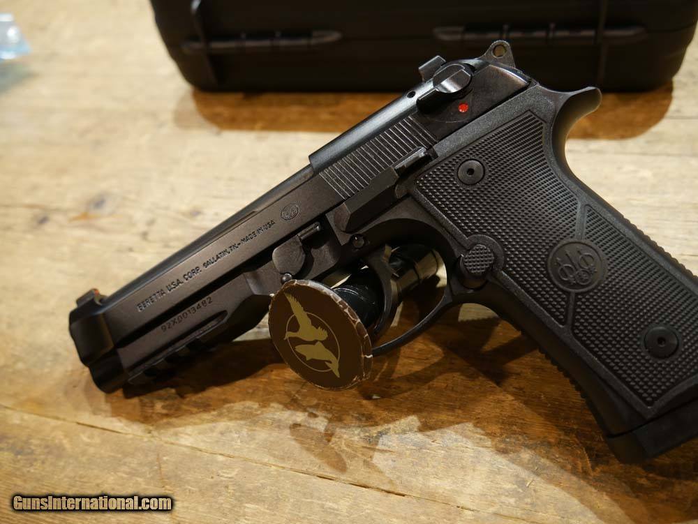 Description: ***THIS GUN WAS DISPLAYED IN OUR SHOP AND HAS A COUPLE OF BLEMISHES, SHOWN IN THE LAST 4 PICS. ALL ARE MINOR AND COSMETIC. IT WAS NEVER FIRED AND IS NIB*** Beretta 92X FR Full Size semi-auto pistol in 9mm Luger. 4.7" Barrel. F-type decocker/safety. 6.1" sight radius. High visibility orange front sight/black rear. Underbarrel accessory rail. Bruniton finish. 33.3oz unloaded weight. Vertec style vertical grip with included larger wrap-around grip to customize the grip size. From Beretta: "The 92X Full Size take the proven reliability of the venerable M9 Family to the next level. Incorporating new universal ergonomic features such as a standard straight backstrap profile frame with new flat and wraparound highly textured grips included to fit the majority of shooters needs out of the box. These features, combined with Combat Sights, enhanced fire control, and an extended magazine release result in an uncompromising pistol that aims for top performance ideal for competitive dynamic shooting and/or defensive purposes. The new 92X, the evolution of the 90 series family." Comes new in box with: Hard plastic carry case, (3) 17-rd magazines, lock, manuals Please call or email with any questions. Must ship to FFL. ***$35 SHIPPING AND INSURANCE*** ***NO CREDIT CARD FEES*** ***ALL WARRANTIES ARE HANDLED BY THE MANUFACTURER*** SOLD Manufacturer: BERETTA Model: J92FR921 Caliber Info: 9MM Condition: NIB |