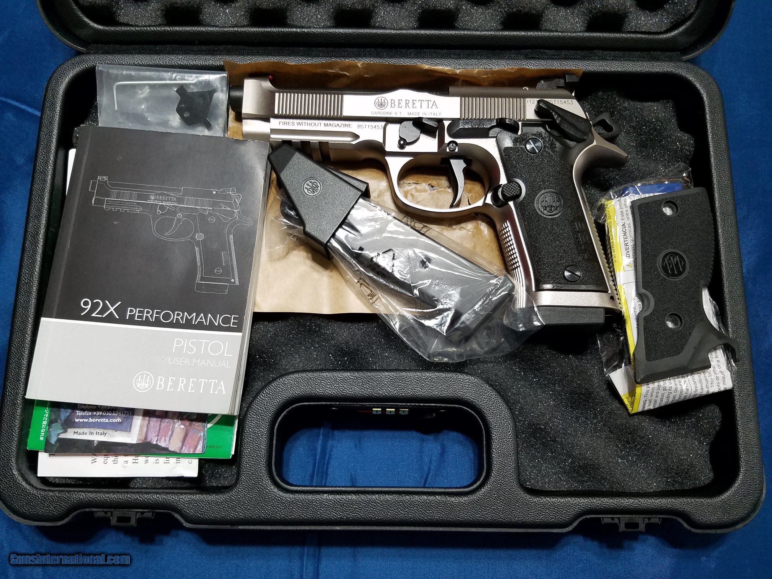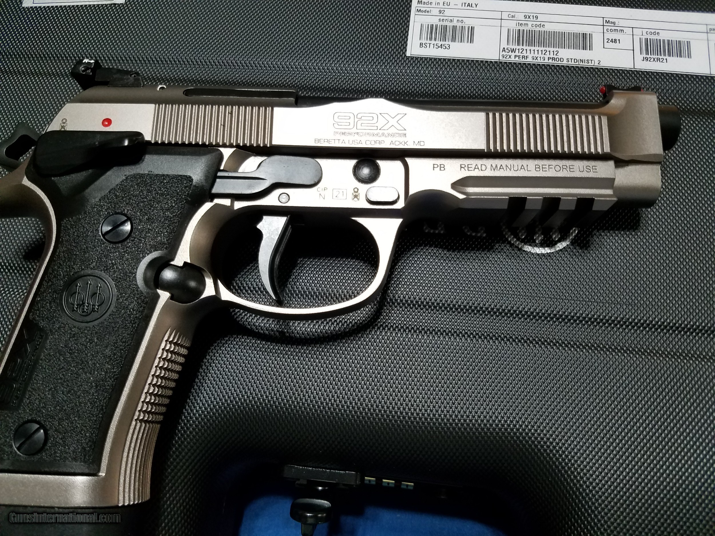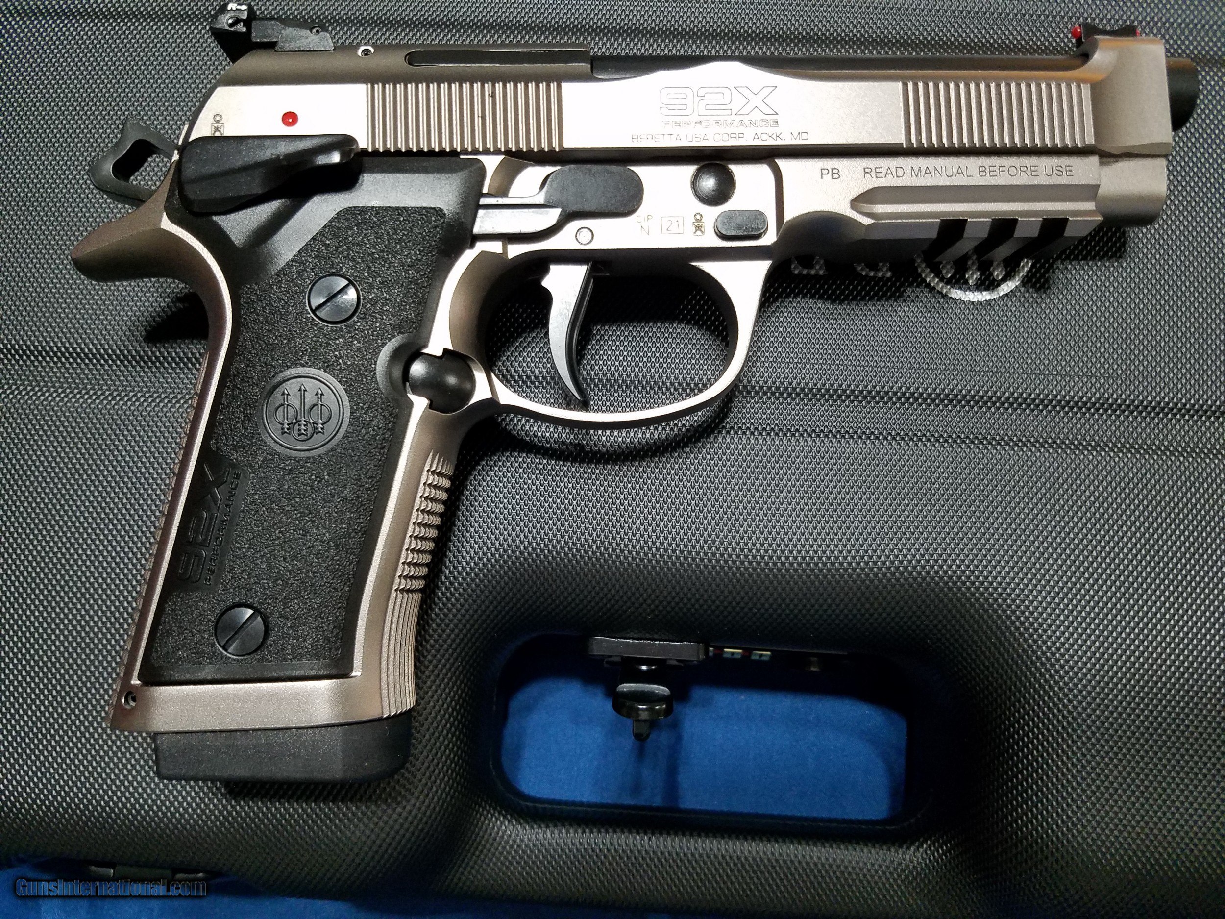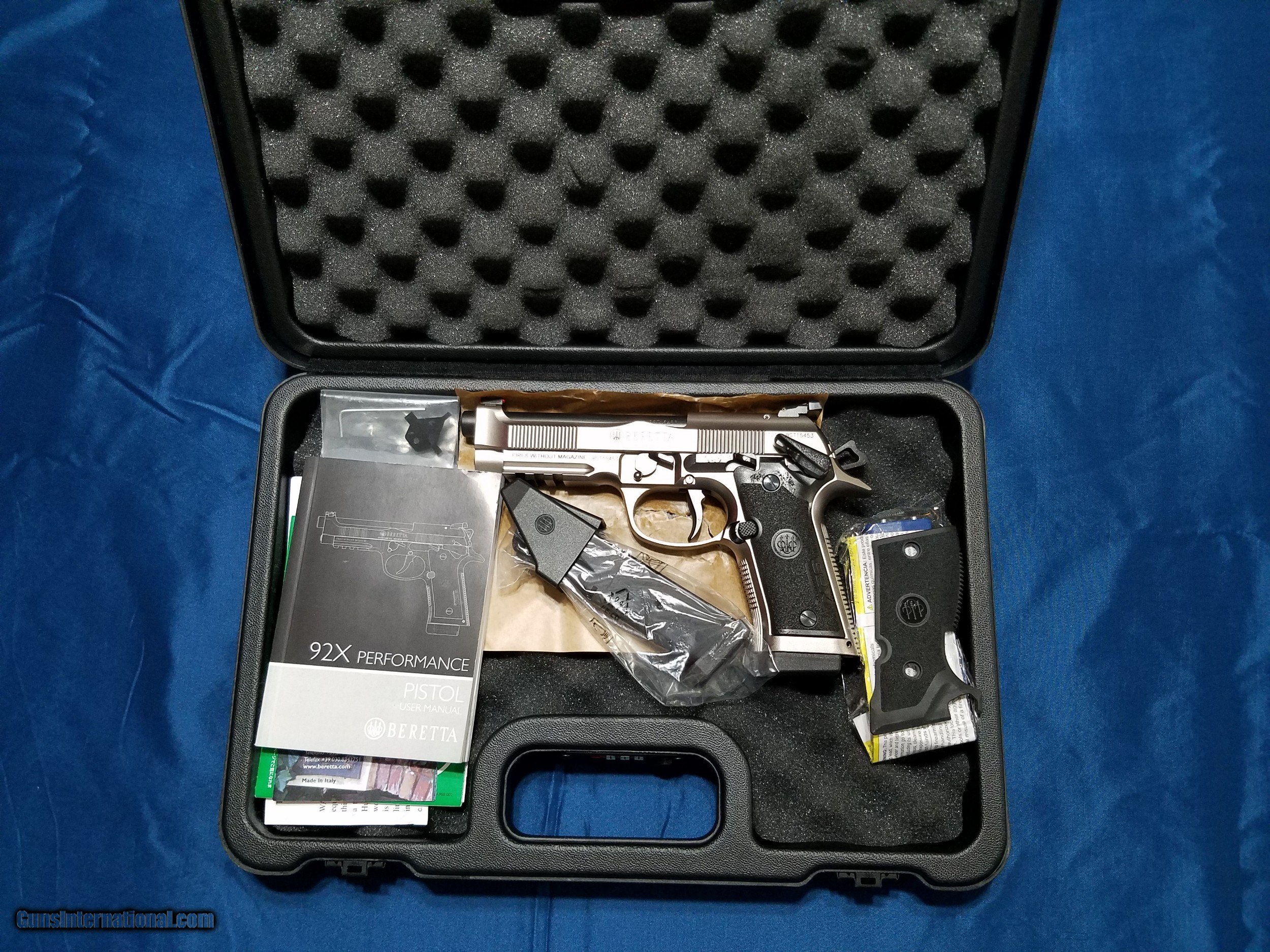 Description: Beretta 92X Performance 9mm 15rd 4.9" J92XR21 Shipping is a flat rate of $30.00 via UPS Factory New Condition FFL is required Unit Price: $1,295.00 Quantity Purchased: 1 Location: Wichita Falls, TX 76302 Payment Methods: Personal Check, USPS Money Order, Money Order, Certified Check Inspection/ Return Policy: 3 days per GI policy *Note: I am NOT an FFL. Please verify that your FFL will accept a firearm from a non-FFL. I will provide a copy of my Texas Driver's License. *Note: the included extra grip has scratches on it from previous shipment. *See last 2 photos. The way the gun was placed in the case allowed it to scratch the extra grip. The gun itself is NOT damaged in any way. The price is discounted for the grip damage. The Beretta 92X Performance 9mm was created to satisfy two requirements: Speed and accuracy. Beretta's new competition pistol is uncompromising and aims for top performance, offering the world of competitive dynamic shooting one of the most reliable and world-renowned locking systems, together with a steel frame, a heavier Brigadier slide and the new Extreme-S trigger mechanism. Features