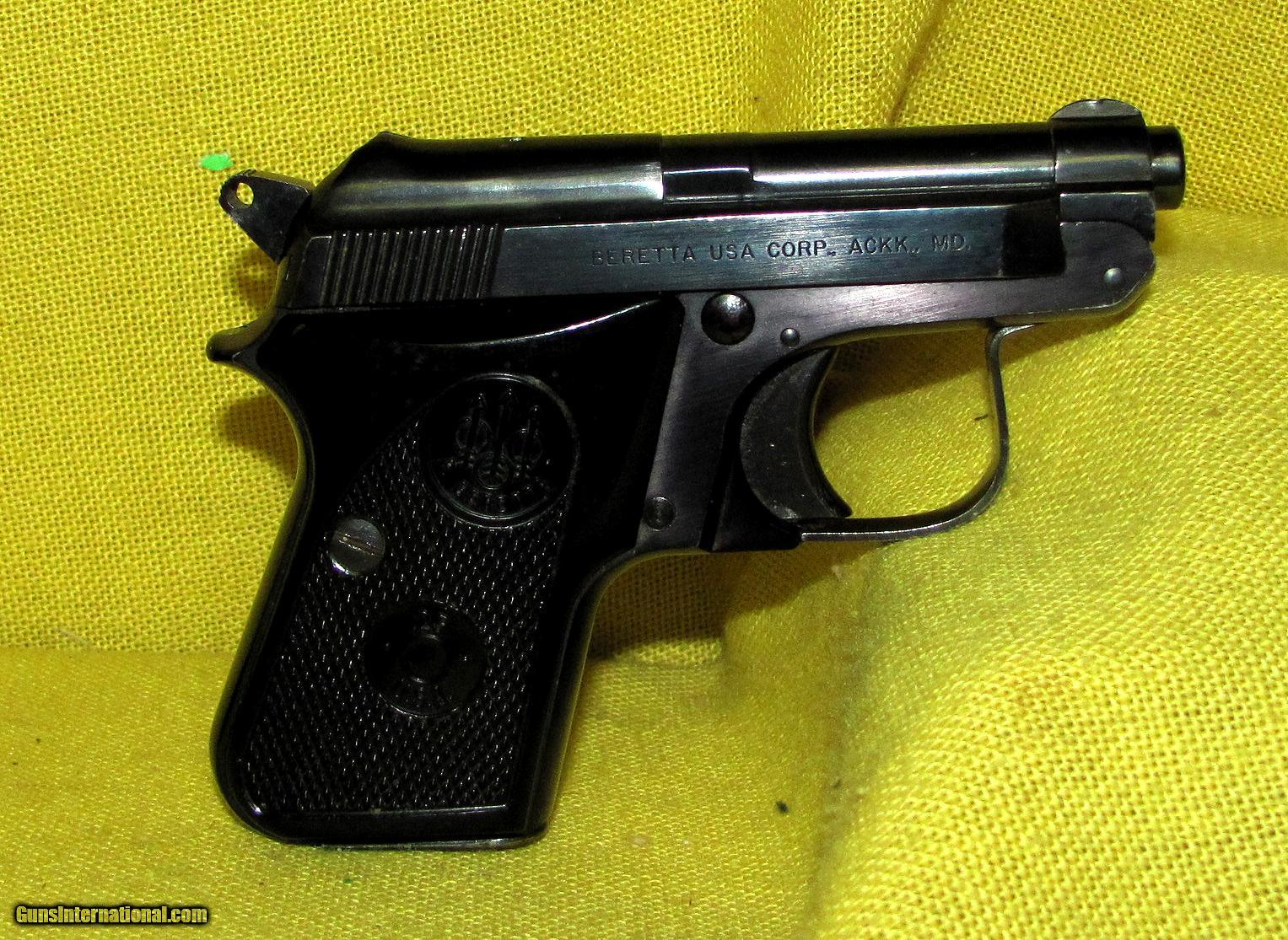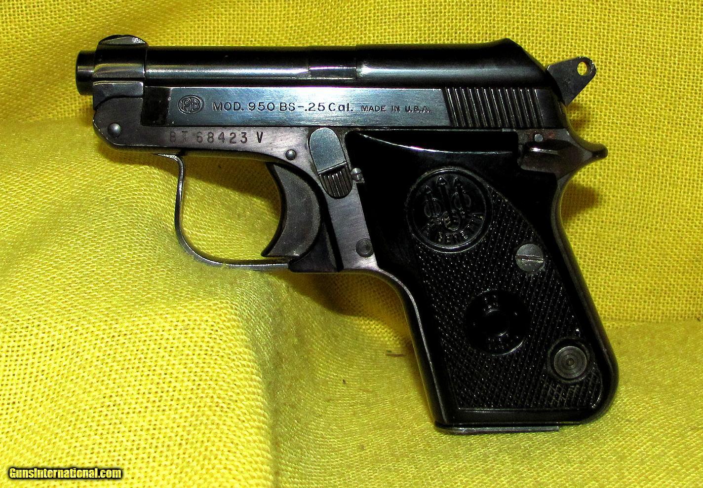 Description: BERETTA model 950 BS in .25 ACP CAL., with 2 1/4" barrel. Color BLUE. BERETTA MODEL 950 BS (TIP UP), BORE AND GRIPS ARE EXCELLENT, 98% FACTORY FINISH, COMES WITH ONE FACTORY MAGAZINE, OUR NEW STOCK # D31433 Condition 97%. Serial number BT68423Y. SOLD |