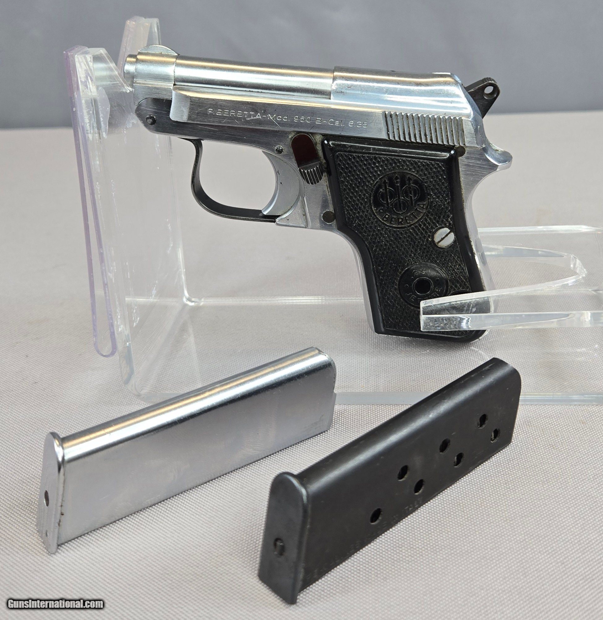Description: Guns Listing ID: 468563 Beretta 950 B .25ACP Nickel Used, Great Condition-85% Overall Barrel Length: 2.44 Inches Caliber: .25 ACP Nickel Plated Tip Up Barrel Checkered Plastic Beretta Grips Single Action Only 1x Nickel Plated Magazine 1x Blued Magazine S/N: B91891 FID: 24080002 P SOLD Manufacturer: BERETTA Model: 950B w/ 2 Mags Condition: Used - Non-Certified Barrels: 2.44 Gauge Info: 6.35MM/.25 ACP |