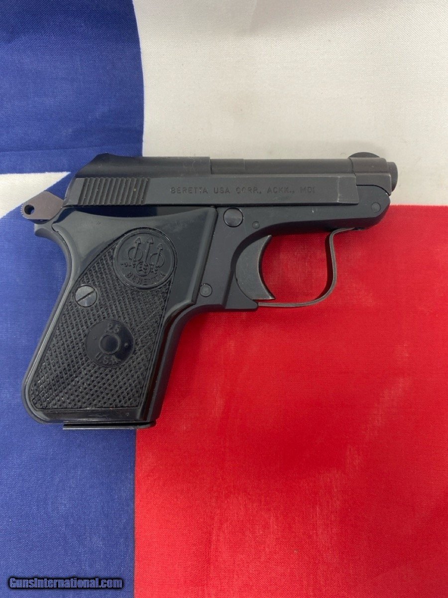 Description: Guns Listing ID: 554041 The Firearm You’ve Been Looking For! Each firearm is carefully inspected and accurately described, with clear, detailed images to provide full transparency. What you see is exactly what you’ll get – guaranteed! Buy with absolute confidence! Manufacturer: BERETTA ARMS Model: 950BS Caliber: .25 AUTO Action: SEMI AUTOMATIC Barrel Length: 2.20\" Finish / Color: BLUE Case / Box: NOT INCLUDED Magazine(s): ONE Capacity: 7 ROUNDS Extras: POCKET HOLSTER Please note that the overall condition of an item may be subjective. We encourage you to review all images carefully before finalizing your purchase. Detailed photos are provided to give a clear representation of the firearm’s condition, including any wear or markings. While we strive to accurately represent each item, buyer expectations may vary, so please use the images as your primary reference. SOLD Manufacturer: BERETTA Model: 950BS Caliber Info: .25 ACP Condition: Used - Non-Certified Barrels: 2.2 BARREL Action: SEMI AUTOMATIC Finish: black |