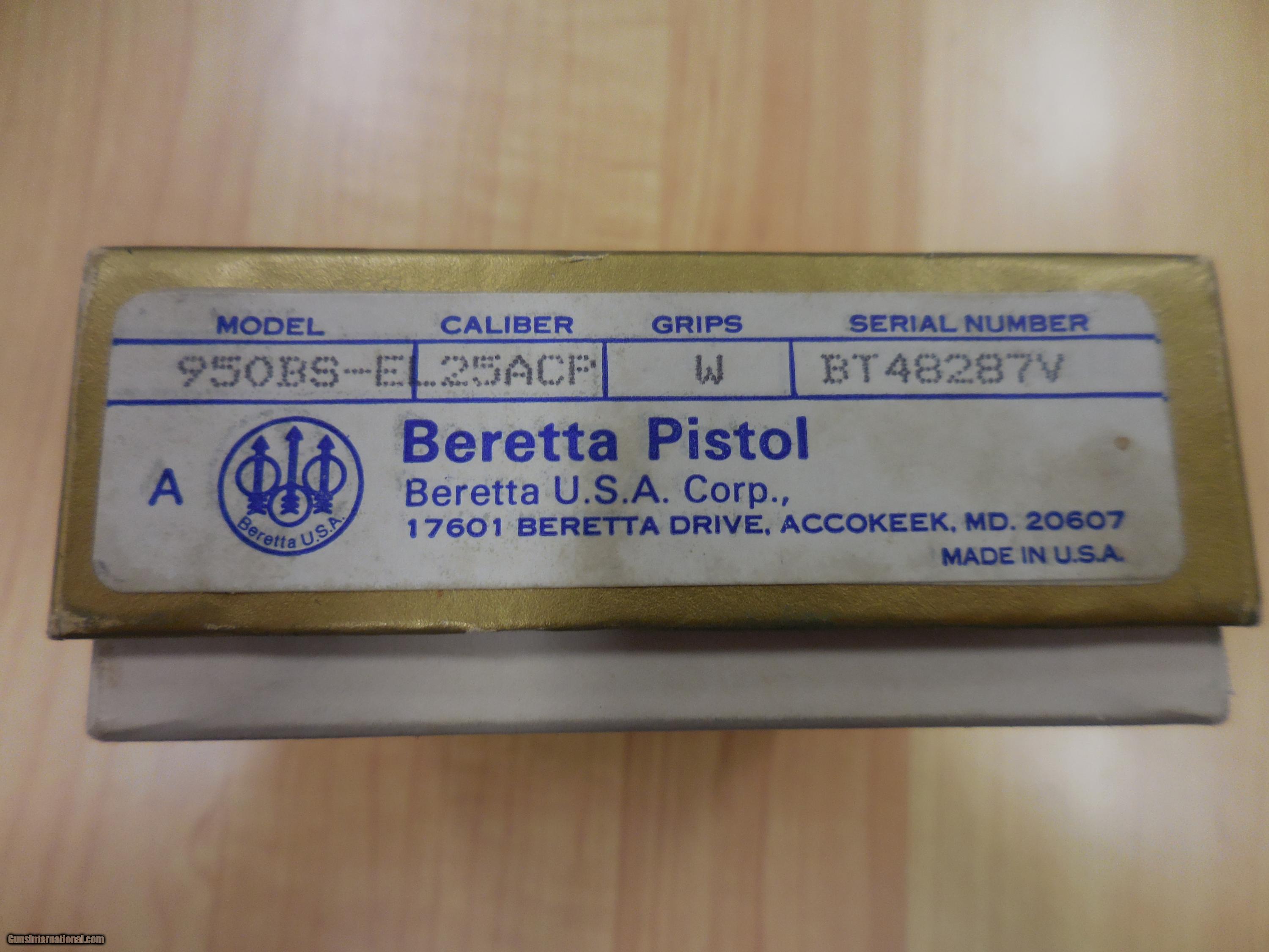 Description: HAVE A BERETTA MOD 950-E DELUXE 25ACP 99% ORIG BLUE FINISH GOLD APPOINTMENTS WOOD GRIPS IN ORIG BOX & MANUAL CALL TO ORDER AT 401 738 1889 SOLD |