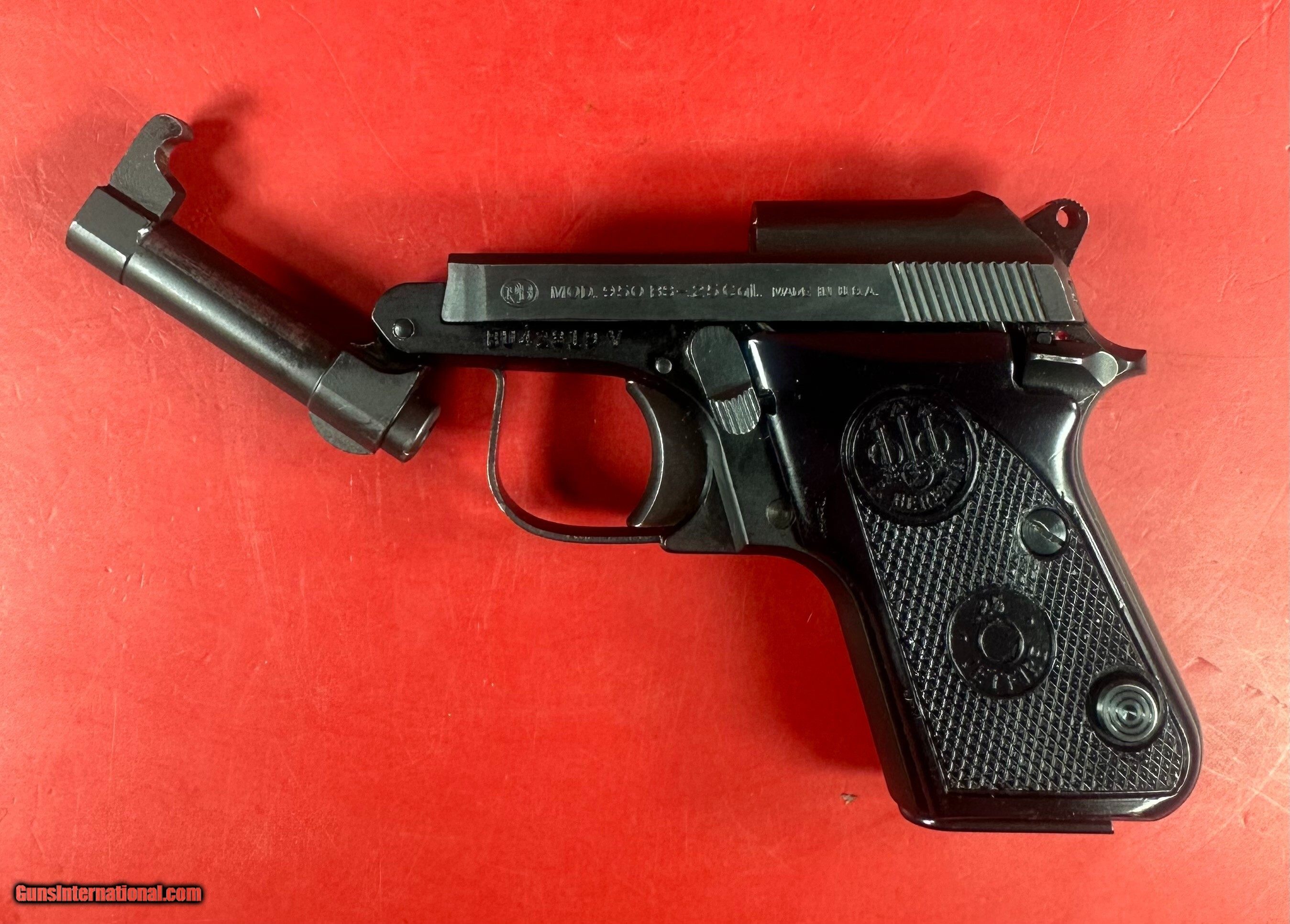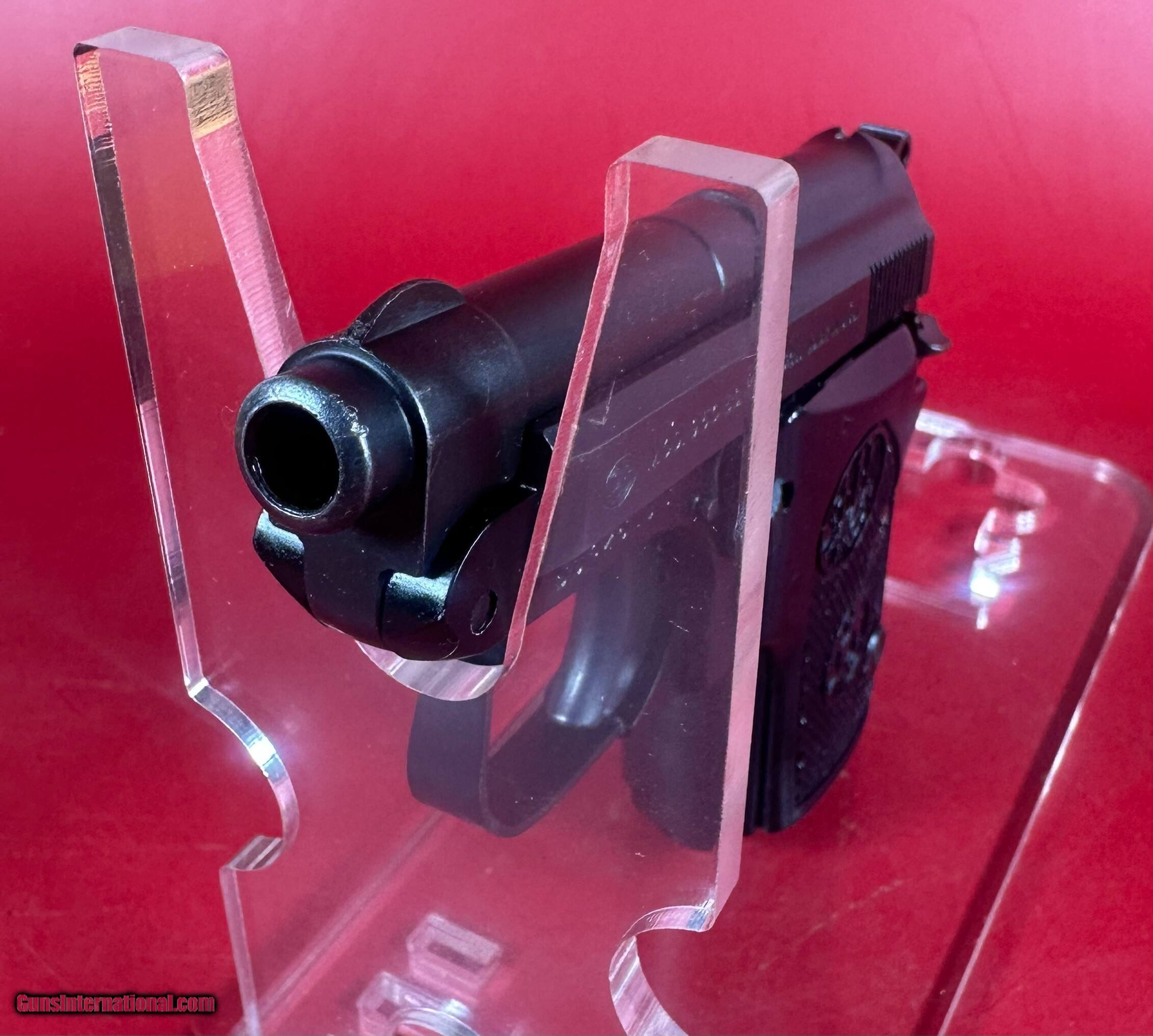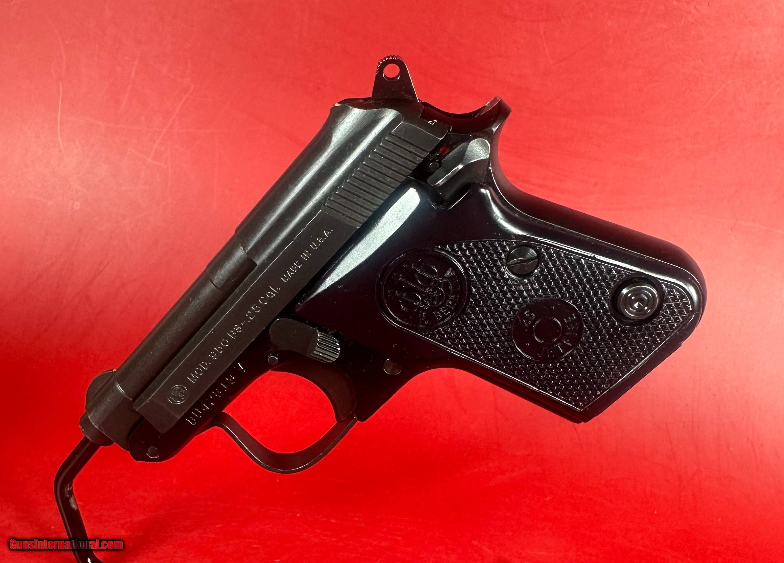 Description: The Beretta Model 950BS Jetfire is a classic micro compact pistol, revered for its reliability, ease of carry, and storied history. Its signature Tip Up Barrel makes it easy to chamber, without racking the slide. This model is chambered in .25 ACP (6.35mm) and is perfect for everyday carry (EDC), offering a unique blend of classic design and practical functionality. Owning the Beretta Model 950BS Jetfire means possessing a piece of firearms history known for its durability, ease of use, and classic design. Whether you are a seasoned collector, a firearms enthusiast, or someone in need of a dependable EDC weapon, the Jetfire stands out as a superior choice. Don't miss the opportunity to add this exceptional pistol to your collection. The example is in excellent condition. Bore is shiny with strong rifling. Metal is about 98%, grips about 98%. Sale includes two magazines. Specifications