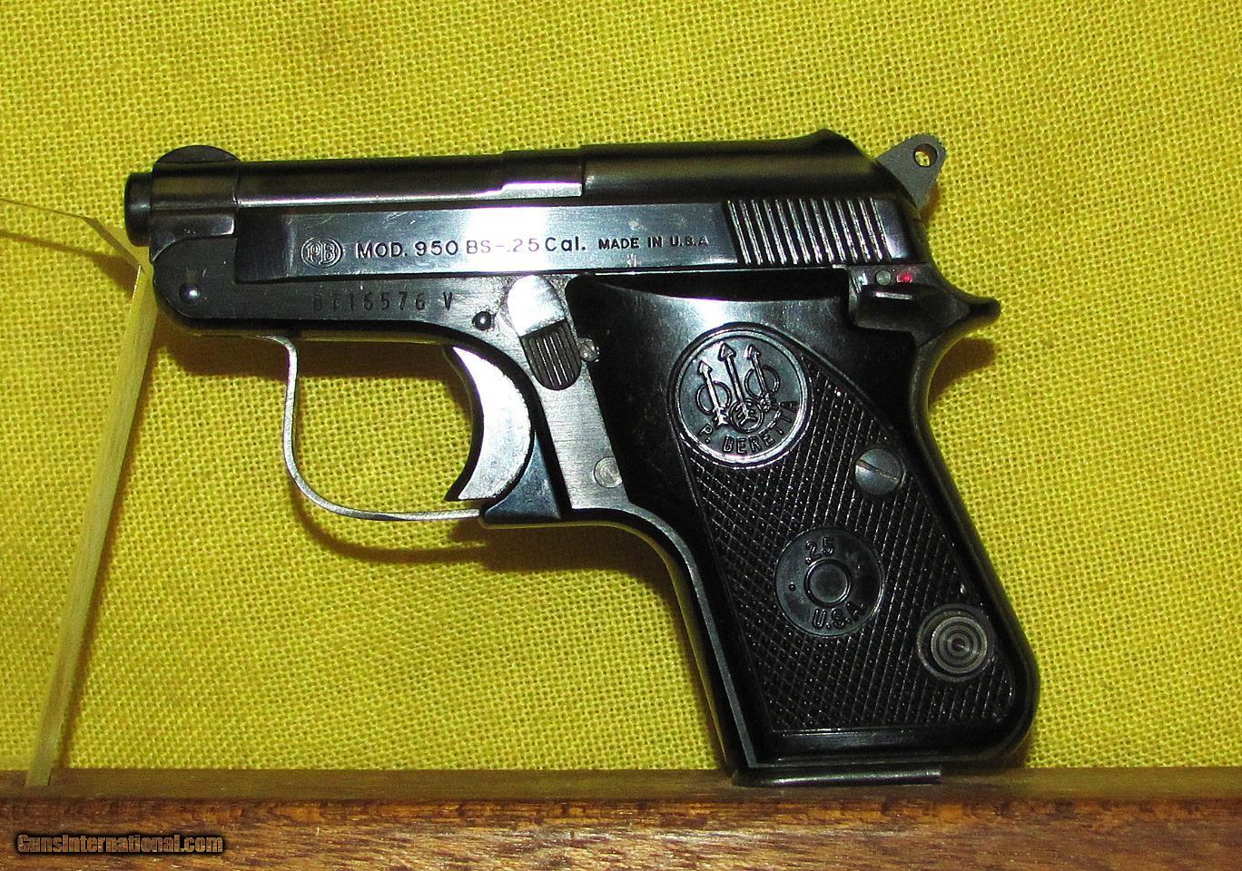 Description: BERETTA 950BS IN .25 ACP CAL., WITH 2 3/8" BARREL. COLOR BLUE. CONDITION 98%. SERIAL NUMBER BT16576V. BERETTA MODEL 950BS (TIP OUT), COMES WITH ONE FACTORY MAGAZINE, GRIPS AND BORE ARE BOTH EXCELLENT, 98% FACTORY FINISH. OUR NEW STOCK # D32131. SOLD |