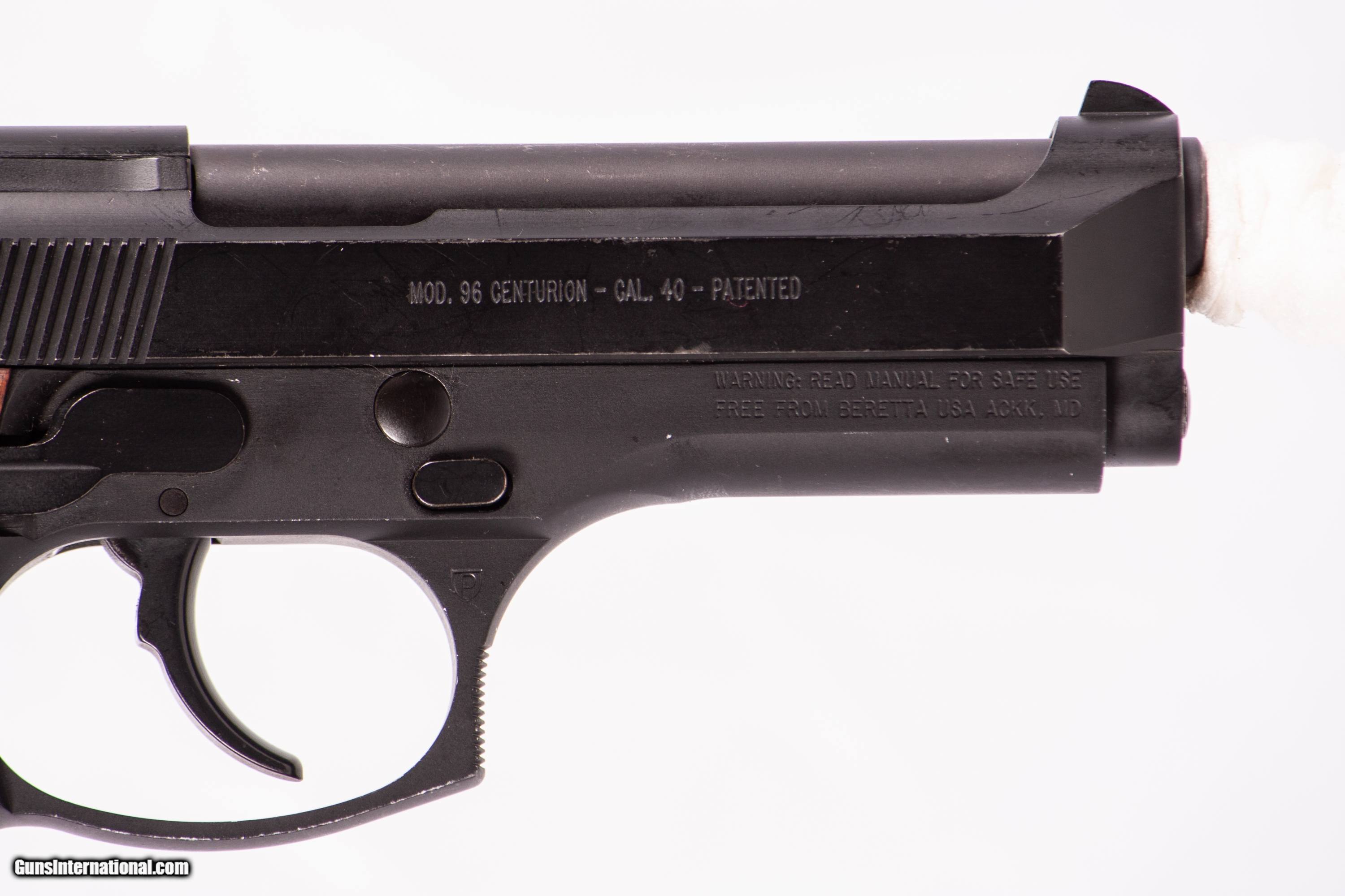 Beretta 96 chambered for 40 S&W with a 4 3/8 inch barrel a bright & shiny bore with a case and 1 extra magazine. This firearm has light handling marks however is in very good condition and is covered by Dury's Lifetime Warranty.