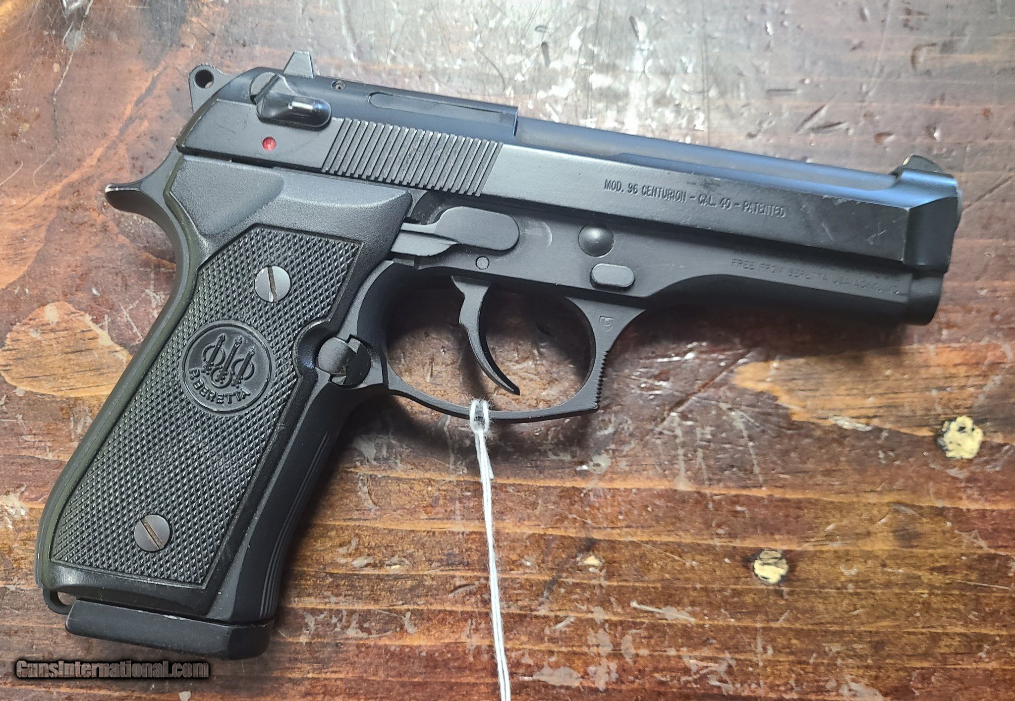 Description: Guns Listing ID: 547649 The Beretta 96 Centurion is a compact variant of the Beretta 96 series, chambered in .40 S&W. It was designed for users who wanted a balance between the full-sized Beretta 96 and a more compact carry option. Caliber: .40 S&W Action: Short recoil, double/single action (DA/SA) Capacity: Typically 11+1 rounds (standard magazine), though aftermarket or factory 10- or 12-round mags are available Barrel Length: ~4.25 inches (shorter than the full-size 96 which has a 4.9\" barrel) Overall Length: Approx. 7.75 inches Frame: Alloy frame, steel slide Weight (unloaded): Around 33 oz Sights: Fixed 3-dot sights (some models came with dovetail cuts) Safety/Decocker: Ambidextrous slide-mounted safety/decocker Finish: Bruniton black matte finish on most models The Centurion frame is full-size, but the slide and barrel are shortened. It retains the open-slide design typical of Beretta 92/96 series pistols, which enhances reliability and reduces slide weight. This model was popular in law enforcement and civilian markets in the 1990s and early 2000s, but it is now discontinued. SOLD Manufacturer: BERETTA Model: 96 Caliber Info: .40 S&W Condition: Used - Non-Certified Barrels: 4 BARREL Action: SEMI AUTOMATIC |