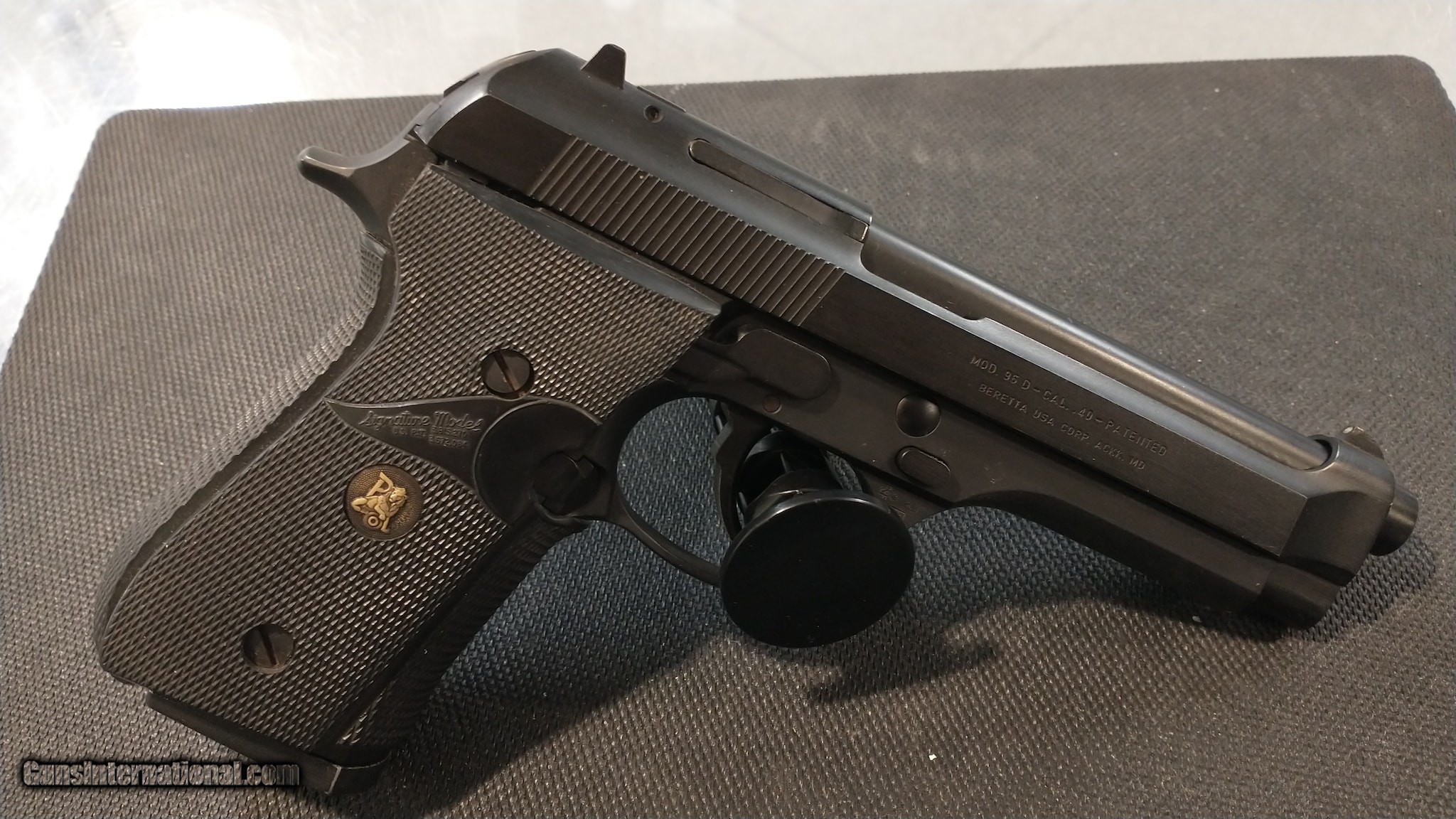 Description: Guns Listing ID: 1105131 Beretta Model 96D, .40 S&W caliber pistol. This is a Double action only and has no external thumb safety. This firearm comes with 2 extra magazines and a holster. There are a few wear spots on the barrel (see Photos). SOLD Manufacturer: BERETTA Model: 96 D Caliber Info: .40 S&W Condition: Used - Non-Certified Barrels: 5 BARREL Finish: BLACK |