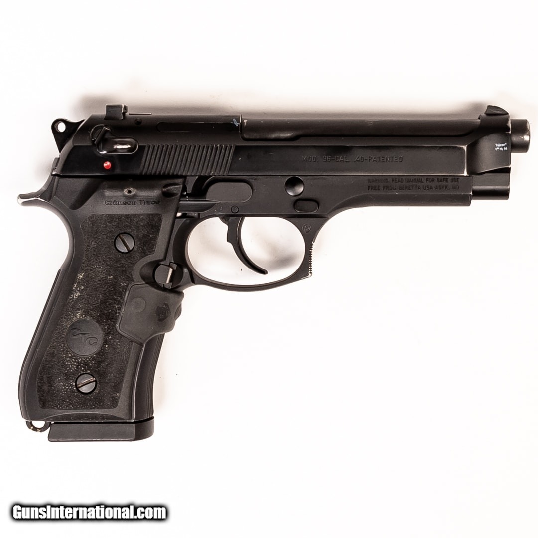 Description: Guns Listing ID: 445269 The Beretta Model 96 is a 40 S&W variant of the legendary Beretta 92/M9. It‚‚s both accurate and dependable. If you‚‚re looking for a duty or self-defense sidearm, this is an excellent choice! This Model 96 has a Crimson Trace laser grip, which needs a new battery. The original case and one 11-round magazine are include SOLD Manufacturer: BERETTA Model: 96 Caliber Info: .40 S&W Condition: Used - Certified Barrels: 4.9 BARREL Finish: BLUE |
